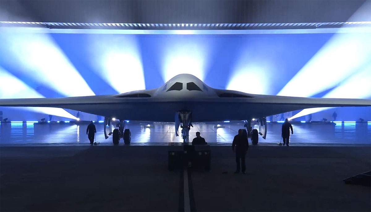 Yhdysvallat esitteli edellisen uuden pommikoneensa B-2 Spiritin yli 34 vuotta sitten 22. marraskuuta 1988 samaisella Northrop Grummanin tuotantolaitoksella Kalifornian Palmdalessa. MH