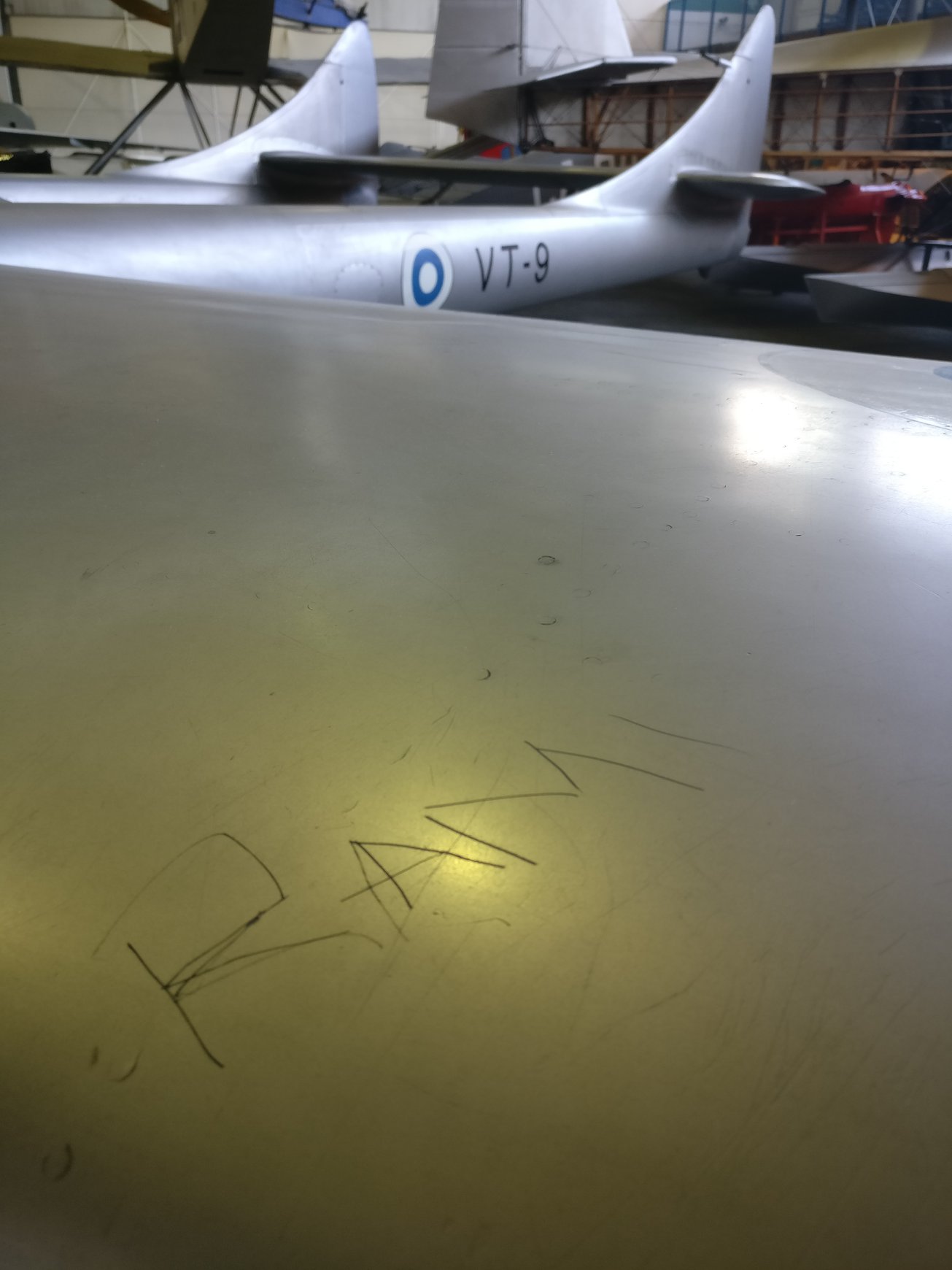 Kiinteistöpuolen työntekijät havaitsivat koneisiin tehdyt ylimääräiset merkinnät viime viikolla kansainvälisen museopäivän kunniaksi Akin ja Jaakon nimet. Lisäksi koneessa on aiemmin löydetty Ramin puumerkki. Koneeseen tehdyt merkinnät eivät aiheuta puu-metalli -rakenteiselle koneelle välitöntä vaaraa. Korroosiolle se tosin altistaa ja ulkoasu on nyt epäsiistimpi. Jälkien korjaamiseen käytettävä aika on poissa muusta entisöintihankkeesta sekä syö myös museon rahoja.