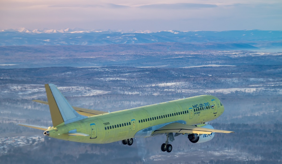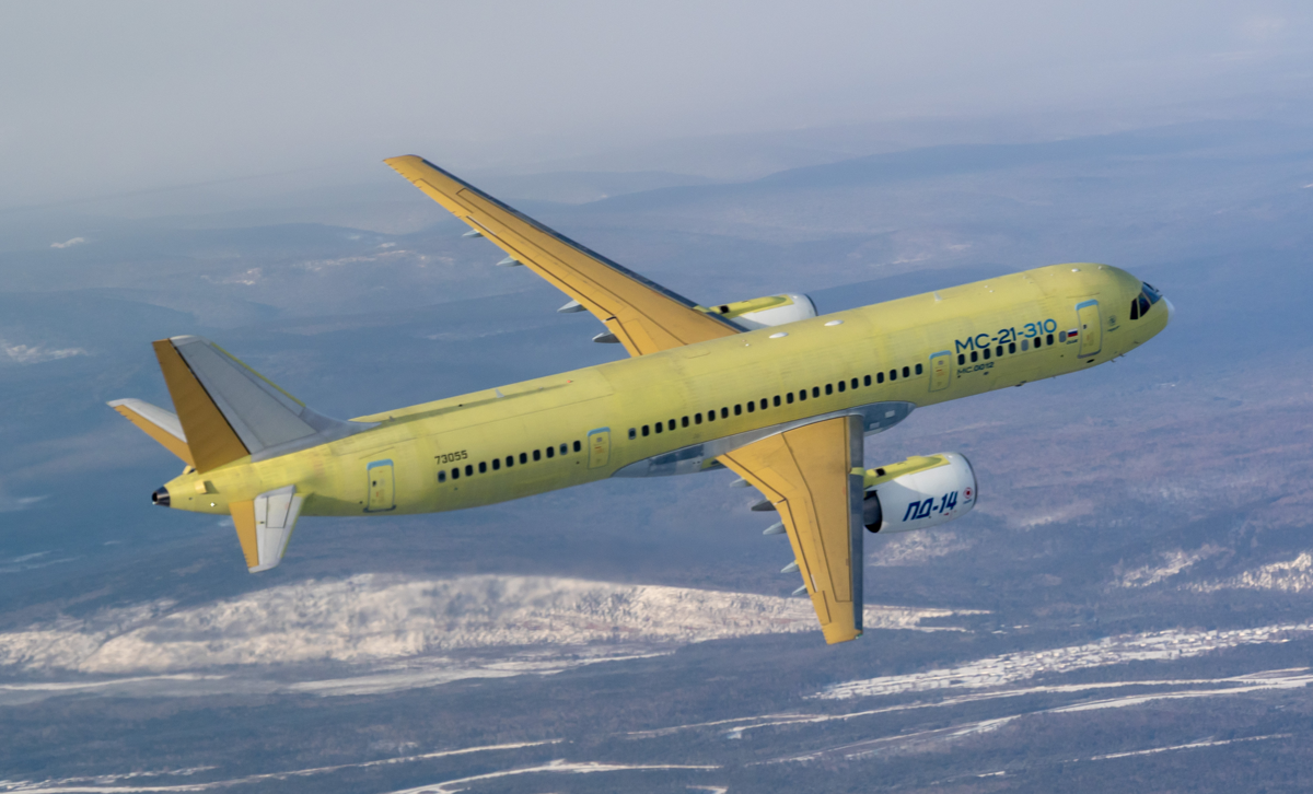 Venäläisvalmisteinen Irkut MC-21-310 suoritti ensilentonsa jo vuonna 2017, mutta nyt 15. joulukuuta 2020 konetyyppi lensi ensimmäisen kerran venäläisvalmisteisilla Aviadvigatel PD-14 -moottoreilla. Noin tunti ja 25 minuuttia kestänyt koelento suoritettiin Irkut Corporationin kotikentällä Irkutskissa. Koelentäjät Vasily Sevastyanov ja Andrey Voropaev sekä koelentoinsinööri Alexander Solovyev suorittivat lennon aikana kokeita erilaisilla moottoriasetuksilla lentokoneen stabiilisuuden, ohjattavuuden ja järjestelmien toimivuuden suhteen. Lennon aikana koneella käytiin 3500 metrin korkeudessa ja lentonopeutta oli suurimmillaan 450 km/h.