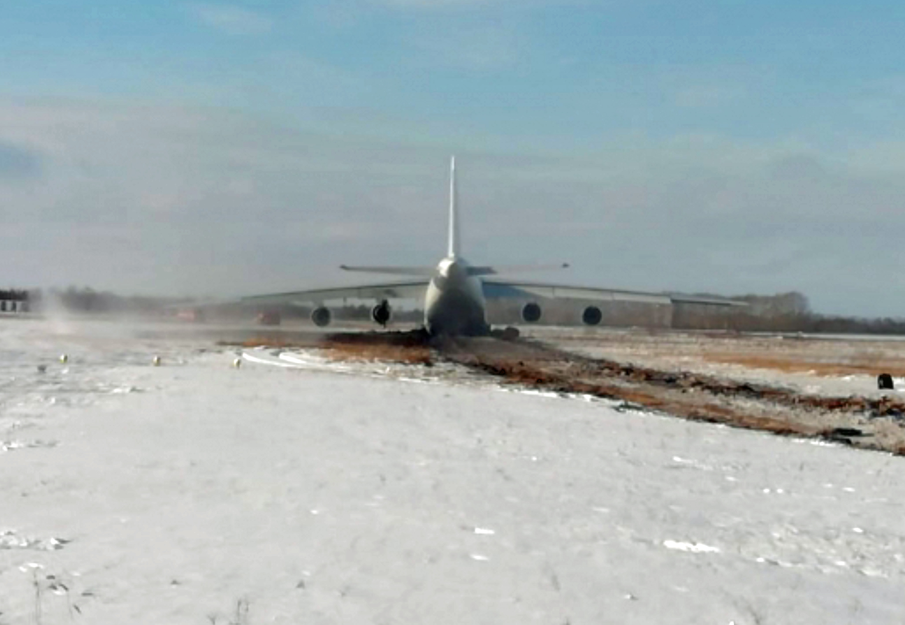 Volga-Dnepr Airlinesin An-124-100 -rahtikone (RA-82042) oli 13. marraskuuta 2020 noussut ilmaan Novosirskistä, kun yksi koneen neljästä moottori hajosi pian lentoonlähdön jälkeen 1000 jalan korkeudessa. Ohjaajat kaarsivat vaurioituneella koneella takaisin lähtökentälle. Laskeutumisen yhteydessä rahtikone suistui ulos kiitotieltä.