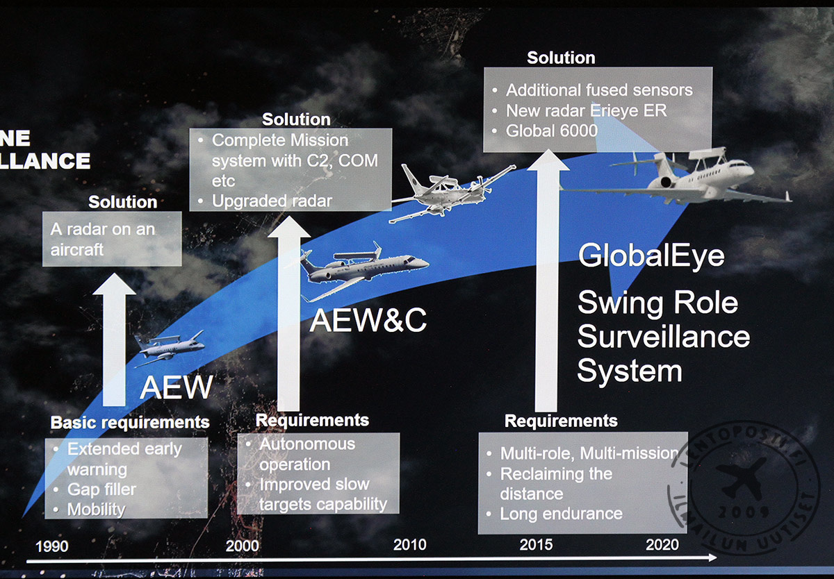 Perinteiset AEW-koneet on suunniteltu lähes ainoastaan ilmavalvontaan mutta Saabin AESA-tutkateknologiaan ja uusimpiin sensoreihin perustuva GlobalEye yhdistää ilma- maa- ja merivalvontakyvyn samaan koneeseen.