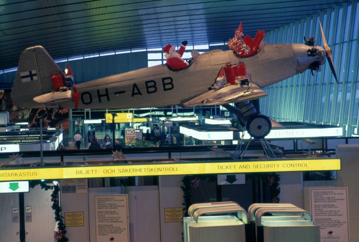 Historiallinen Junkers Junior tervehtii matkustajia uudesta paikasta Helsinki-Vantaalla