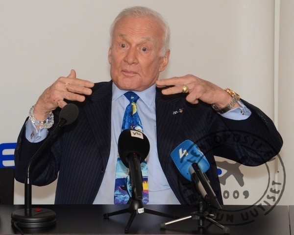 Buzz Aldrin on vieraillut myös Suomessa markkinointiyhteistyön merkeissä. Hän puhui tiistaina 20. marraskuuta 2012 Neste Oilin tilaisuudessa Finlandia-talossa (kuvassa, lue tarkemmin linkistä jutun lopussa). Kutsuvieraat saivat kuulla vahvalla rutiinilla vedetyn, mutta kiinnostavan ja innostuneen kuvauksen miehen elämän vaiheista. Kuulento oli luonnollisesti keskeisessä osassa. T.T.