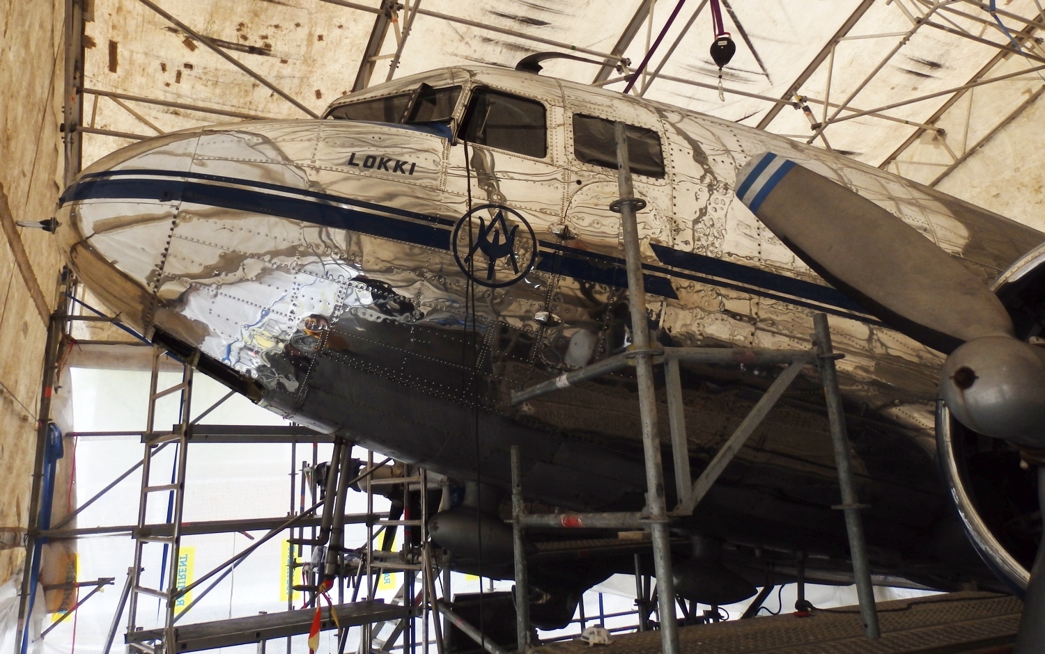 Ilmavoimien ja Aeron entinen Douglas DC-3 OH-LCD Lokki on menossa Vantaan asuntomessujen vetonaulaksi. Konetta kiillotetaan parhaillaan Suomen Ilmailumuseon pihalla olevassa teltassa. Kunnostusryhmän työ on edennyt ja metallipinnat alkavat hohtaa tyylikkään kiiltävinä.