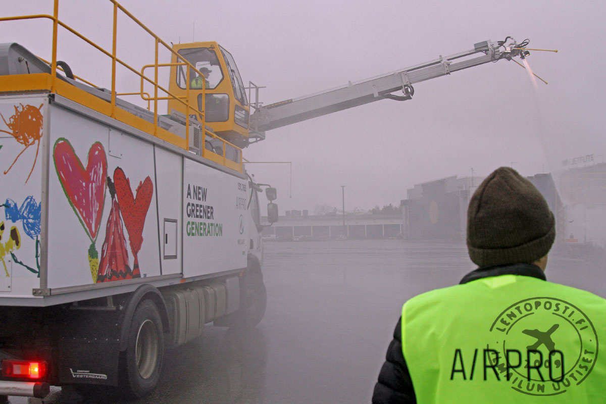 Lentoliikenteessä talvikausi on jo käynnistynyt ja yhä useampi lähtevä lentokone joutuu jäänpoistokäsittelyyn ennen lentoonlähtöä. Helsinki-Vantaan lentoasemalla jäänpoistoja suorittava Airpro on toteuttanut hankkeen, jossa päiväkotilasten värikkäät taideteokset koristavat Airpron uusia sähköhybridijäänpoistoautoja. Airpron uudet jäänpoistoautot tuovat lentoturvallisuuden lisäksi matkustajille myös iloa ja keskustelunaiheita.