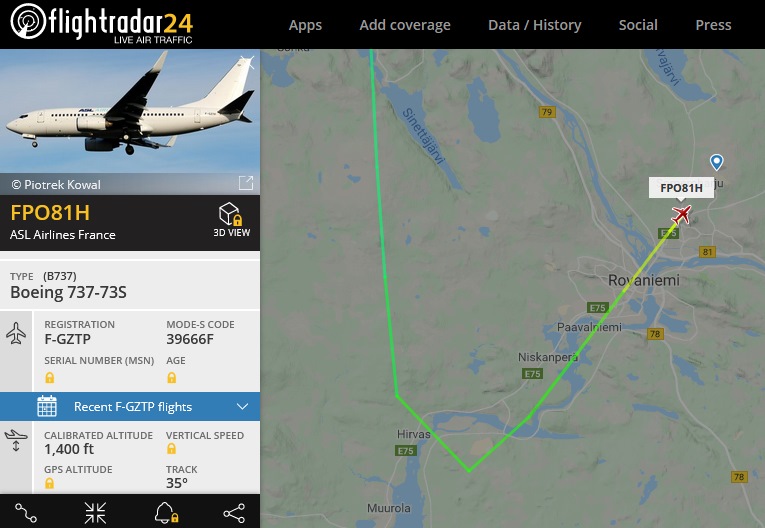 Pariisista Kittilään matkalla ollut ASL Airlines Francen kokovalkoinen Boeing 737-700 -matkustajakone joutui kääntymään ennen määränpäätään kohti Rovaniemeä koneeseen tulleen vian seurauksena. Lapin pelastuslaitos varmisti koneen laskun Rovaniemen kiitotielle 03 noin kello 14.00. Koneessa oli 146 matkustajaa. Miehistönä oli ainakin kaksi lentäjää ja kolme matkustamohenkilökunnan jäsentä. Laskusiivekevika aiheuttaa normaalia suuremman lähestymisnopeuden, joka puolestaan johtaa kiitotietarpeen kasvamiseen. Kittilän kiitotien pituus on 2500 metriä, kun Rovaniemellä se on 3002 metrinen. Myös kiitotien jarrutustehot voivat vaikuttaa laskupaikan valintaan. Vikaantunut kone jatkoi matkaansa Kittillän jo iltapäivällä kello 15.07.