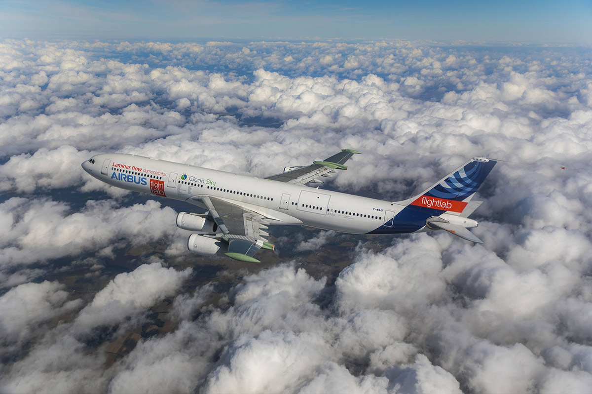 Eurooppalaisvalmistajan ensimmäiseen A340-300 -koneyksilöön (MSN1, F-WWAI) on asennettu noin kymmenmetriset laminaariset siipipaneelit. Niiden pinta on täysin sileä eli niistä puuttuu aaltoilu, saumat sekä niitit. Koko siipiosa on valmistettu yhtenä kappaleena. Airbusin A340 Flight Lab -koelentokone aloitti koelennot laminaarisella siivellä 26. syyskuuta Ranskan Tarbesissa. Pitkän koelento-ohjelman ensilento kesti 3 tuntia ja 38 minuuttia