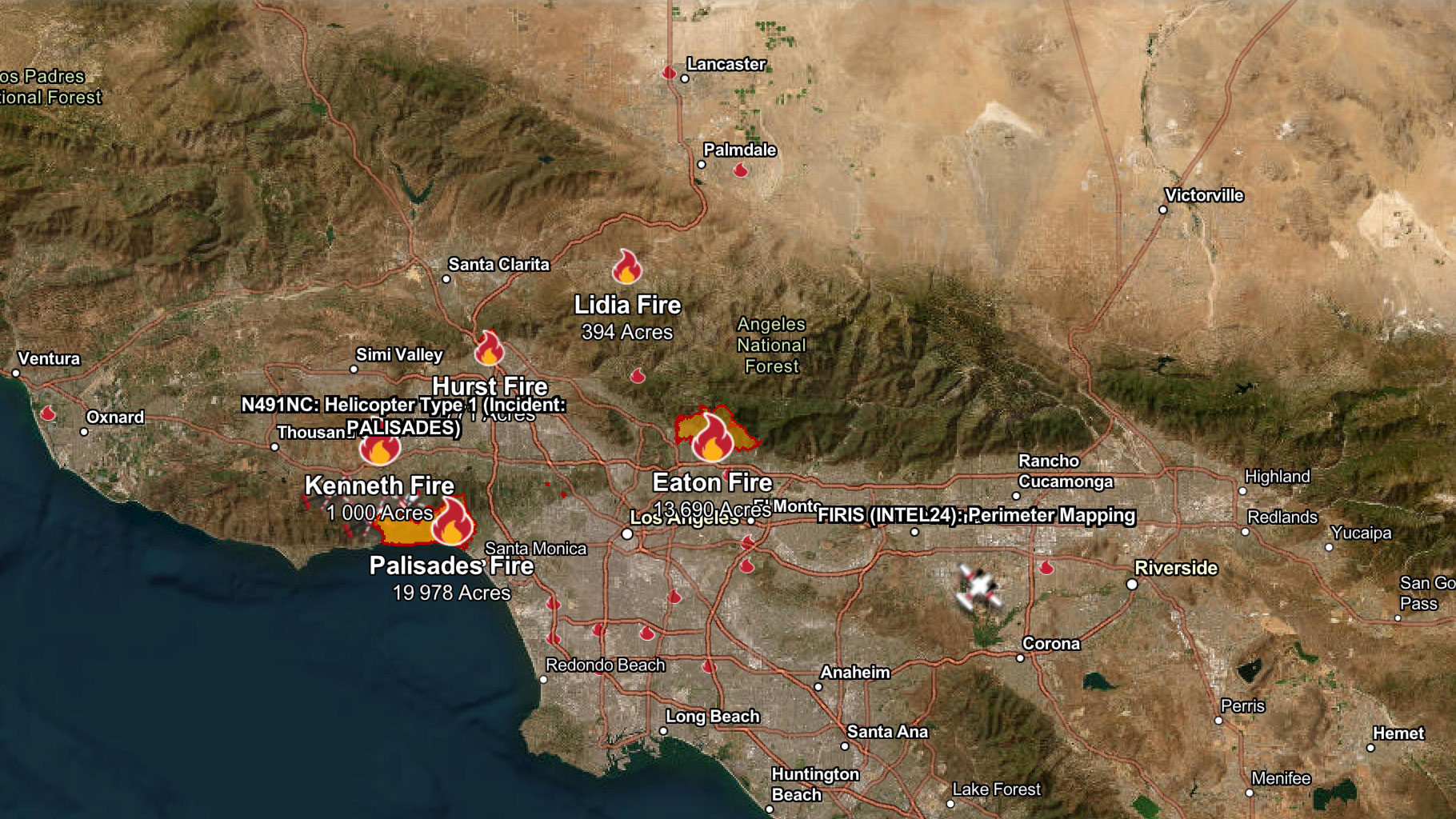 Kalifornian maastopaloalueella Palisadesissa operatiivisella sammutuslennolla ollut Canadair CL-415 Super Scooper -sammutuslentokone törmäsi alueen yllä droneen torstaiaamuna 9. tammikuuta 2025 noin kello 10.00 paikallista aikaa.