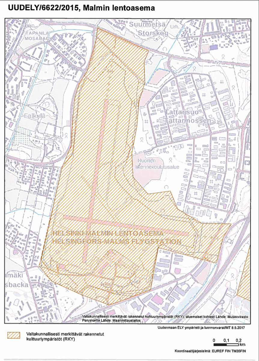 Kaupunginmuseo katsoo lausunnossaan, että myös lentoaseman yhteyteen 1940-luvulla rakennetun laajan parakkikylän viimeisiä säilyneitä parakkirakennuksia tulisi mahdollisuuksien mukaan säilyttää muistumana alueen tästä rakennusvaiheestamuuttuvassa ja tiivistyvässä rakenteessa Rakennuslautakunnan päätösote oli lähetetty tiedoksi Uudenmaan ELY-keskukselle ja Helsingin kaupunginmuseolle. Purkukohteena olevan rakennuksen alueella ja koko lentokenttäalueella on vireillä rakennusperintölain mukainen suojeluprosessi, minkä vuoksi ELY-keskus antoi Malmin lentokentälle vaarantamiskiellon. ELY-keskus on toimittanut päätöksen 8. toukokuuta 2017 tiedoksi suojeluesityksen tekijälle (Malmin lentoaseman ystävät ry), Helsingin kaupungille, Ympäristöministeriölle, Maanmittauslaitokselle, Museovirastolle ja Helsingin kihlakunnan poliisilaitokselle.