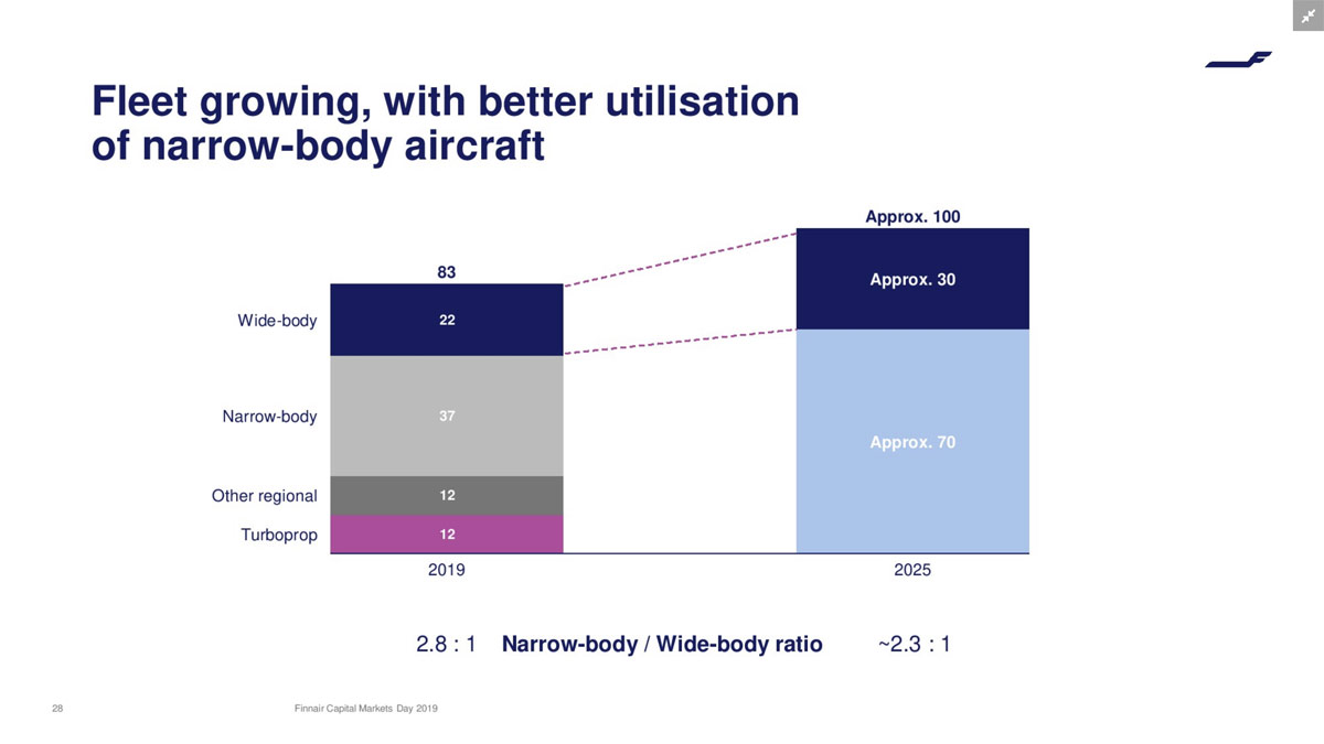 Finnair kertoi yhtiön pääomamarkkinapäivän aamulla 12. marraskuuta investoivansa kapearunkolaivastoon arviolta 3,5-4 miljardia euroa. Tarkemmin laivastouudistusta avattiin pääomamarkkinapäivän esityksissä. Suunnitelmissa on mahdollisesti ostaa kapearunkokoneiden lisäksi myös lisää laajarunkokoneita.