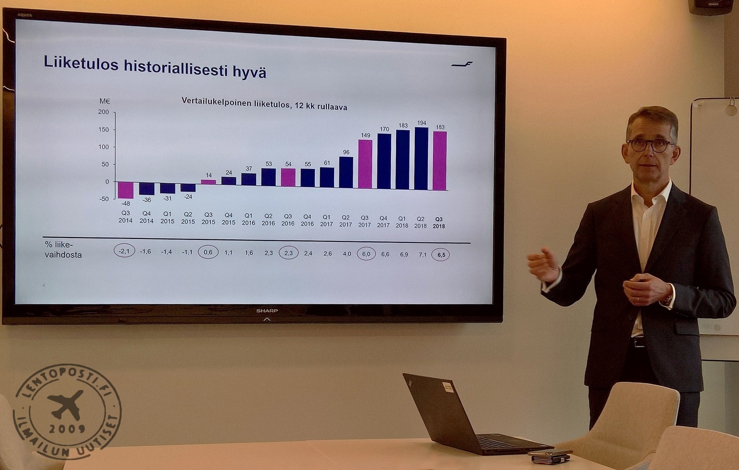 Alkuvuosi 2018 on tarjonnut monia poikkeuksellisia haasteita Finnairille. Taifuunit Aasiassa aiheuttivat peruutuksia ja lämmin kesä vähensi kotimarkkinassa innokkuutta matkustaa ulkomaille. Samaan aikaan polttoaineen hinta nousi ja kilpailu kiristyi. Positiivisena tietona Pekka Vähähyyppä kertoi, että yhtiön Los Angelesin kausireitti on otettu hyvin vastaan. Se jopa ohittaa San Franciscon suosion. Kohde todennäköisesti lanseerataankin jossain vaiheessa ympärivuotisena. Palvelun suhteen Finnairissa iloitaan APEX Official Airline Rating arvioinnissa saatuja viittä tähteä. Luokituksen arvoa nostaa se, että se on saatu suoraan lentomatkustajilta. Euroopan kapearunkokoneista jo 21 on varustettu ViaSat-yhtiön langattomalla internetillä. Kyseessä on merkittävä investointi. Satelliitin kautta dataa välittävä laitteisto edustaa alan uusinta tekniikkaa ja mahdollistaa jopa HD-videon streamauksen lennolla. Tämä paljon kaistaa kuluttava toiminta on tosin hinnoiteltu kalliimmaksi kuin peruskäyttö.