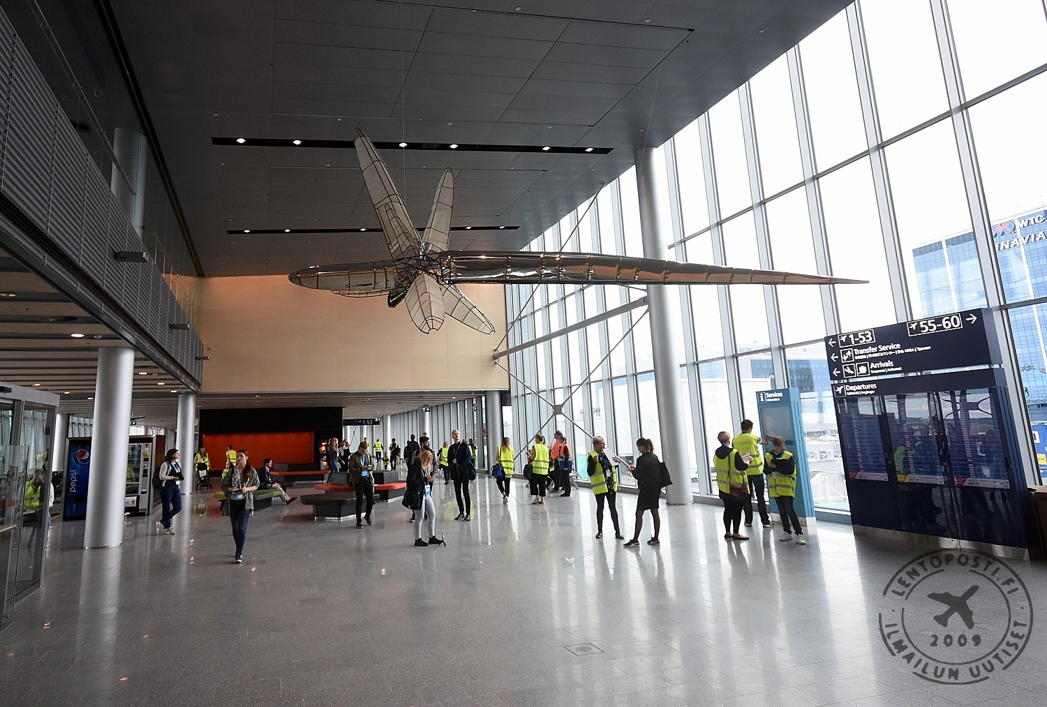 Kuvassa vasemmalla länsisiiven testipäivä on meneillään elokuussa 2017. Lue lisää linkistä jutun lopusta. Uudistuvan Helsinki-Vantaan kehittämiseen osallistuvat myös lentoaseman yritykset ja kenttähenkilöstö. Tässä työssä Finavia käyttää apuna käyttäjälähtöistä virtuaalimallia. "Virtuaalimallin avulla saamme suunnitteluun mukaan tärkeät sidosryhmät entistä vahvemmin. He sitoutuvat tulevaan ja ymmärtävät, millaisia muutoksia laajentaminen tuo tullessaan. Helsinki-Vantaa on ensimmäisiä lentoasemia, joka hyödyntää kolmiulotteista suunnittelua näin laajassa mittakaavassa", sanoo Sundelin. Finavian mukaan Aukio on arkkitehtonisesti vaikuttava tila. Sen jylhät, suomalaisella puulla verhoillut seinä- ja kattorakenteet tarjoavat näyttävät puitteet erilaisille tapahtumille ja ilmiöille. Aukio on osa kaukolentoalueen laajennusta, jonka on kokonaisuudessaan suunnitellut arkkitehtitoimisto PES-Arkkitehdit.