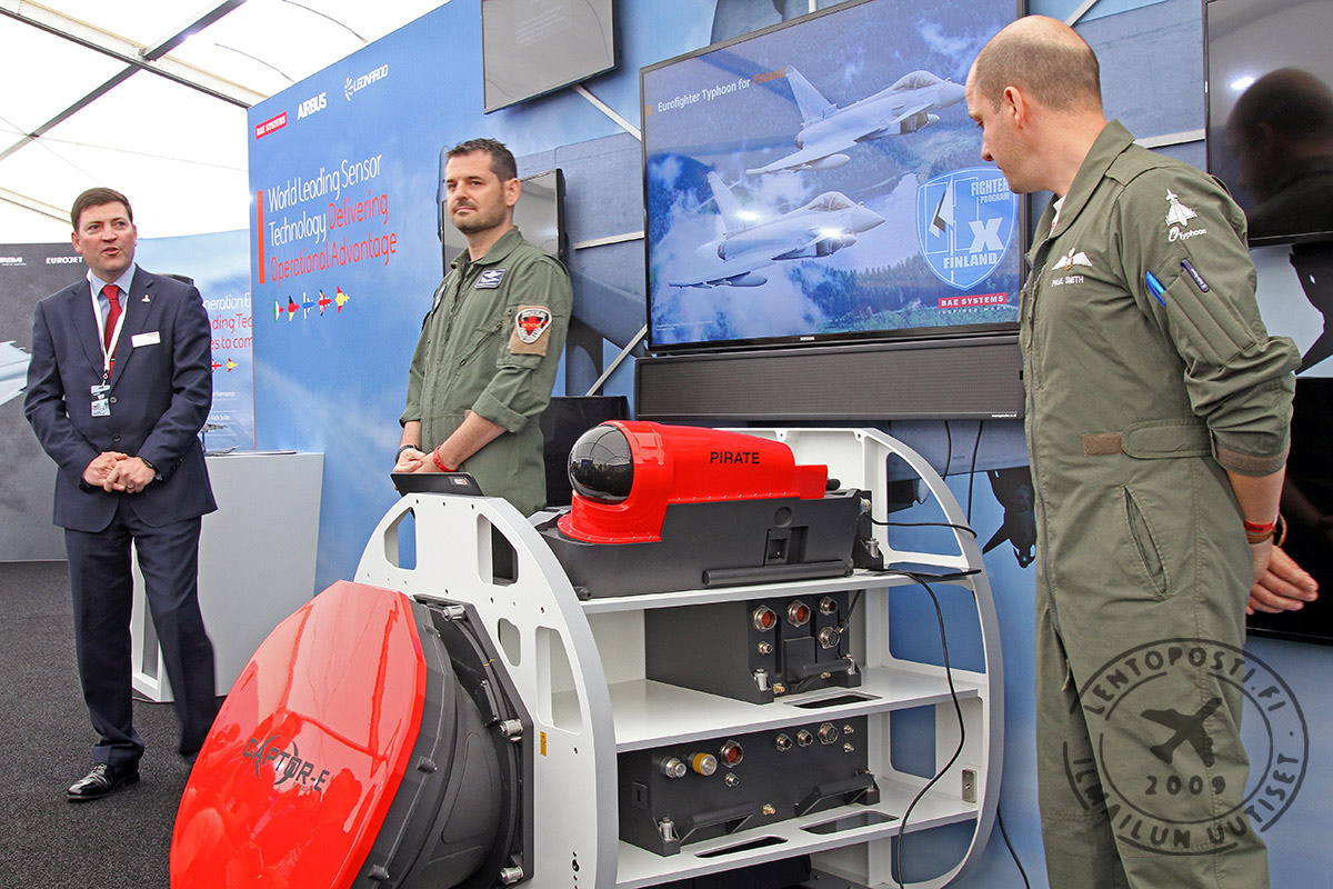 Sen sijaan Eurofighter ja sitä edustava BAE Systems hyödynsi tärkeää päivää järjestämällä Helsingin Musiikkitalossa näyttävän mediatilaisuuden. Sen avasi Ison-Britannian suurlähettiläs Tom Dodd. Yhteiseurooppalaista hävittäjäjärjestelmää olivat osaltaan tukemassa myös muiden Eurofighter-maiden Saksan, Italian ja Espanjan suurlähettiläät.