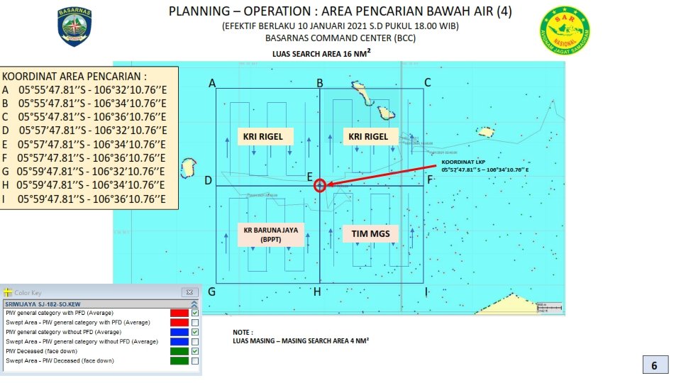 Ensimmäiset lentokoneen osat löydettiin Jaavanmerellä Lakin ja Lancangin saarten väliseltä alueelta myöhään lauantaina 9. tammikuuta Indonesian aikaa. Turmapaikka on Kepulauan Seribun eli Jaavanmeren Tuhansien saarten -alueella.