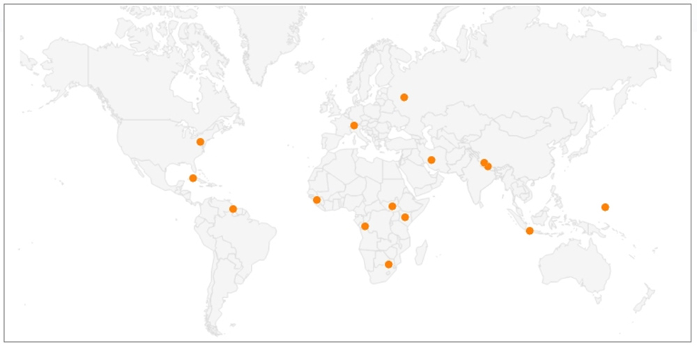 Viidestätoista turmasta viisi sattui Afrikassa. Saman verran turmia tapahtui myös Aasian ja Oseaanian alueella. Turmia oli yksi myös Pohjois-Amerikassa, Etelä-Amerikassa sekä Karibian alueella. Euroopassa sattui vuoden 2018 aikana kaksi lentoturmaa.