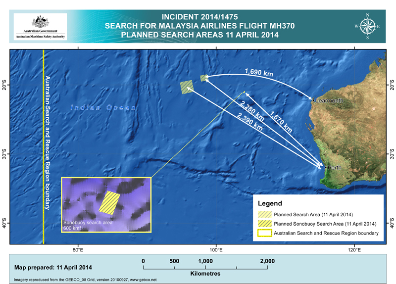 Valmiudessa on Bluefin 21 AUV-alus (Autonomous Underwater Vehicle). Saattaa kestää päiviä, ennen kuin sitä voidaan hyödyntää. Etsintäalueella pohjaan on matkaa noin 4500 metriä, mikä on myös Bluefinin maksimisyvyys. Pelkona on kahden paikanninlähettimen (lennontaltiointilaitteessa ja äänninauhurissa) paristojen vähittäinen ehtyminen. Niille taattu noin 30 vuorokauden toiminta-aika on jo ohitettu. Vedenalaisten etsintöjen ohella jatkuu kauempana merenpinnan tähystäminen koneen mahdollisten kelluvien osien löytämiseksi. Etsijät ovat löytäneet paljon erilaista tavaraa, mutta ei mitään joka liittyisi lentoon MH370. Etsinnöissä on perjantaina mukana 15 lentokonetta ja 13 laivaa. Myös merenpohjan tutkimiseen erikoistunut Englannin laivaston HMS Echo suuntasi kuunteluhavaintojen perusteella rajatulle alueelle.