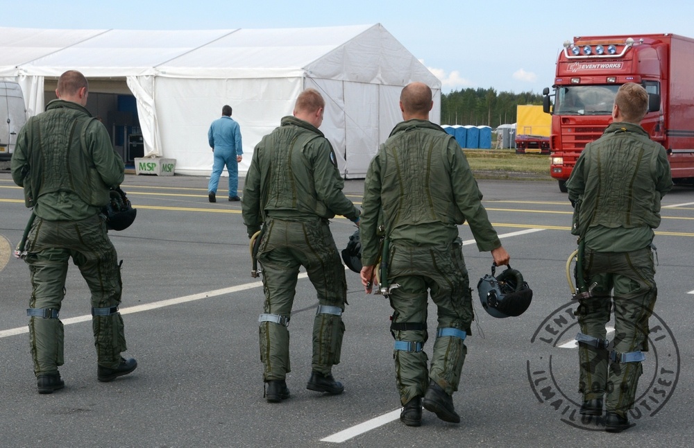 Luonnollisesti Suomen Ilmailuliiton päälentonäytöksessä nähdään myös Ilmavoimien Midnight Hawks -taitolentoryhmä. Se teki ensiesiintymisensä Oulun edellisessä vuoden 1997 lentonäytöksessä. Siinä missä Frecce Tricolorin ja Midnight Hawksien suihkuharjoituskoneet lentävät vaimeasti suhisten, jälkipolttoa käyttävät taisteluhävittäjät aiheuttavat korvia raastavaa melua. Lentoposti.fi muistuttaakin näytökseen matkaavia kuulon suojaamisen tärkeydestä. Rajavartiolaitoksen Agusta Bell AB412 ja AgustaWestland AW119 Koalan yhteisesitys oli hienoa nähtävää. Kopterit lensivät näyttävän paridemon, jossa ne sykronisoidusti vaihtoivat keskenään korkeuksia ja paikkaa.