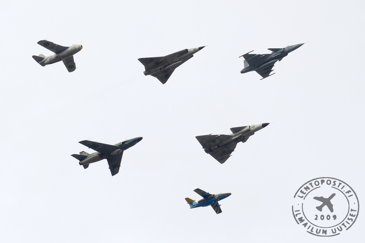 Näytösosuudesta vastasivat pääosin ruotsalaiskoneet mutta lisäksi ilmassa nähtiin Sveitsin ja Suomen ilmavoimien Hornet-soolot sekä Norjan neljällä Saab Safari -koneella lentävä Yellow Sparrows -osasto. Osastolentotaito-osaamista esitteli myös Ruotsin ilmavoimien Team 60 Sk60 (Saab 105) -suihkuharjoituskoneillaan.
