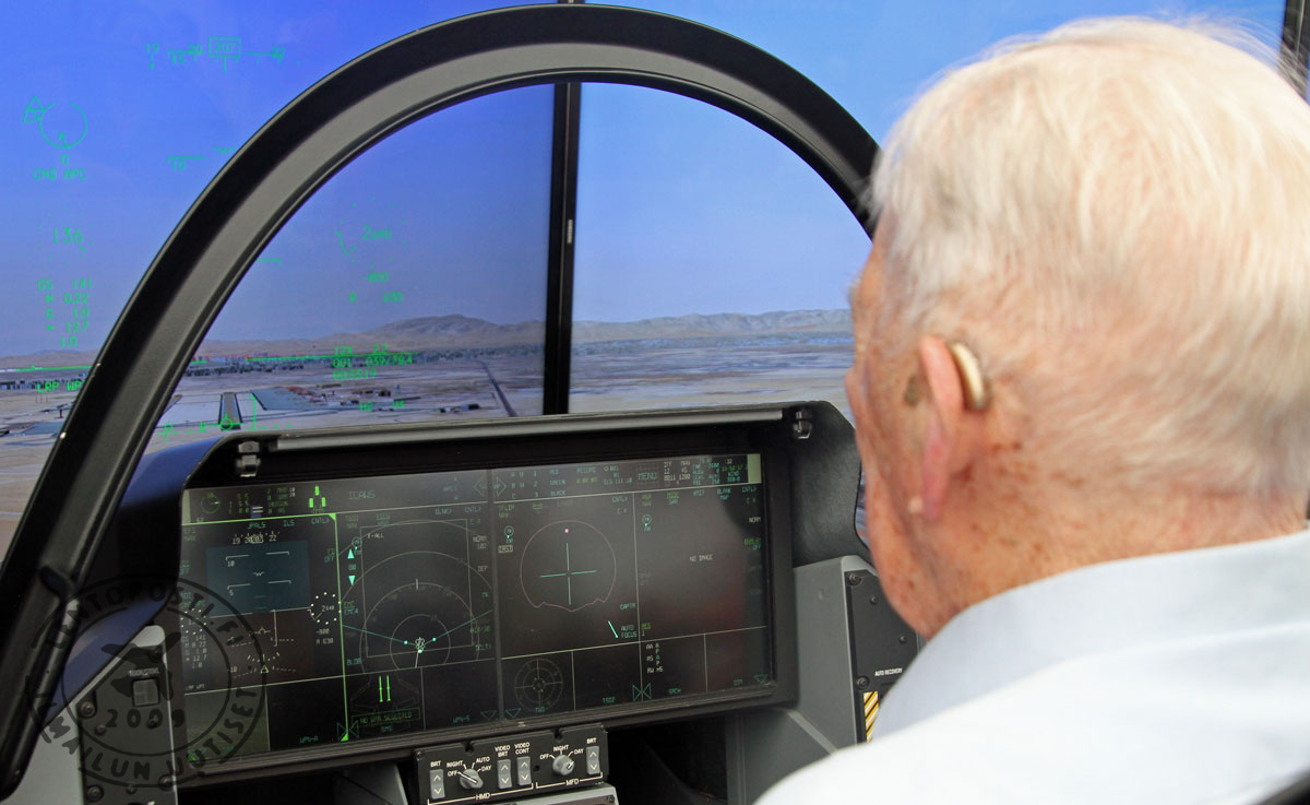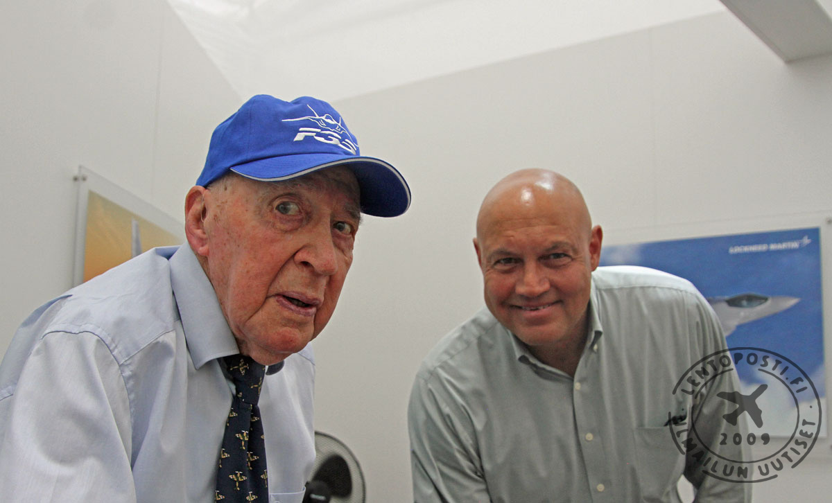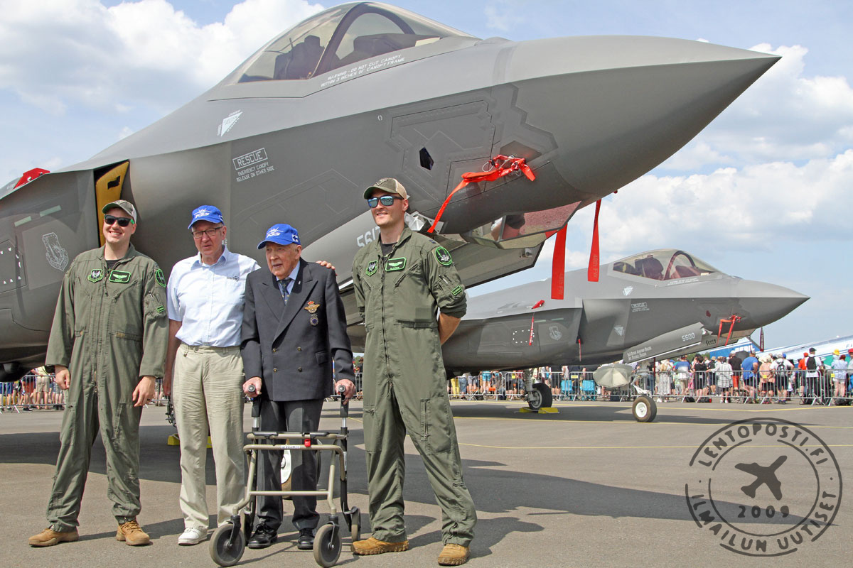 102-vuotias hävittäjälentäjä Mauri Maunula saapui adjutanttinsa eli poikansa Risto Maunulan kanssa paikalle Lockheed Martinin kutsuvieraana lentämään yhtiön F-35A -cockpit demonstratoria.