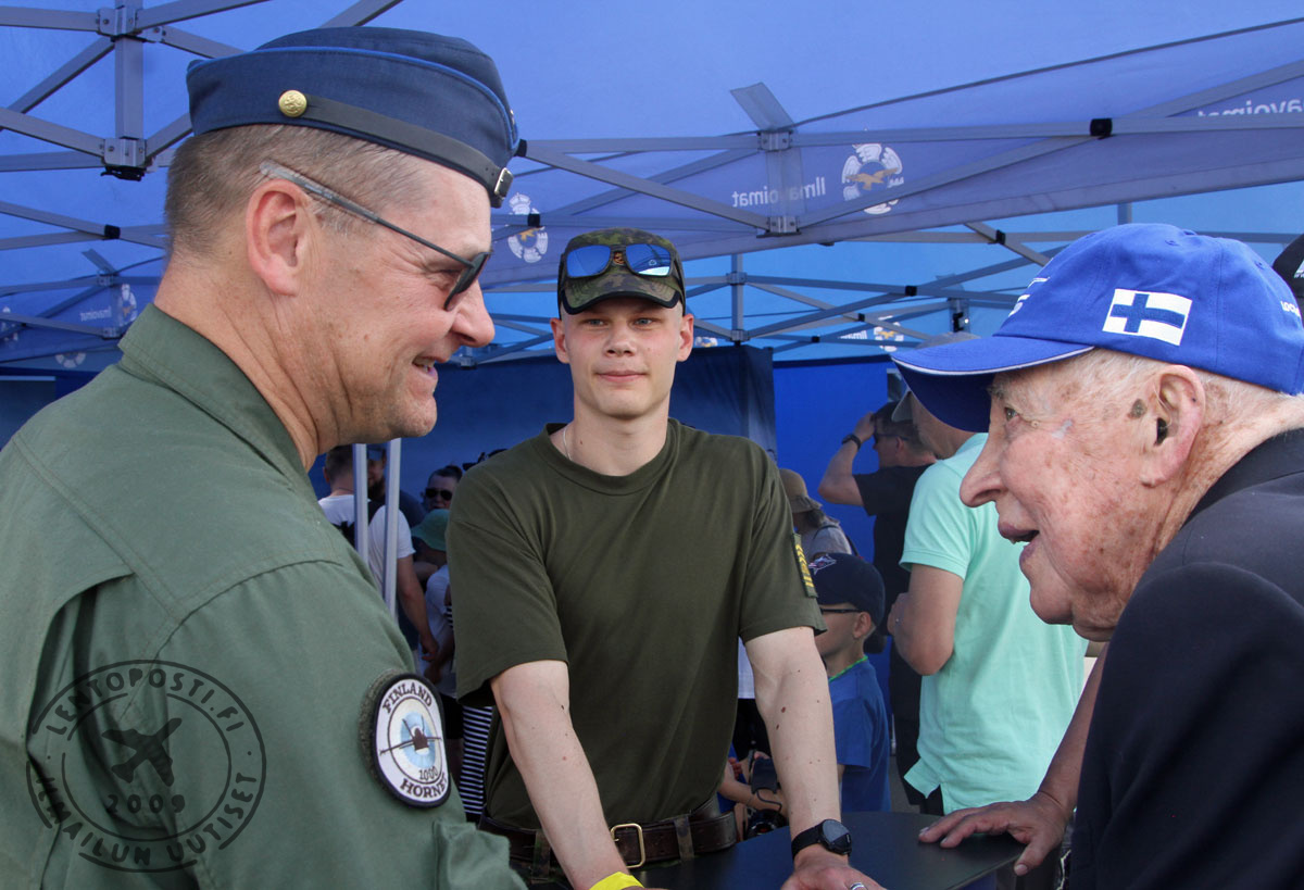 Maunula vieraili Turun helteessä myös Suomen ilmavoimien esittelypisteellä, jossa kuulumisia vaihdettiin ilmavoimien komentaja Juha-Pekka Keräsen kanssa. Samalla Maunula tapasi Ilmasotakoulussa opiskelevia tulevia hävittäjälentäjiä.