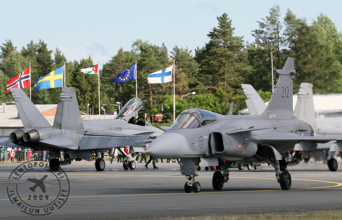 Turun lentonäytöksessä tuotteitaan esittelevä Saab osallistuu lento-ohjelmaan JAS 39 Gripen -hävittäjällään. Ruotsalaisvalmistaja kehittää koneestaan uuden sukupolven JAS 39 Gripen E -versiota. Gripen nähtiin myös Lappeenrannan lentonäytöksessä vuonna 2013 (kuva alla).