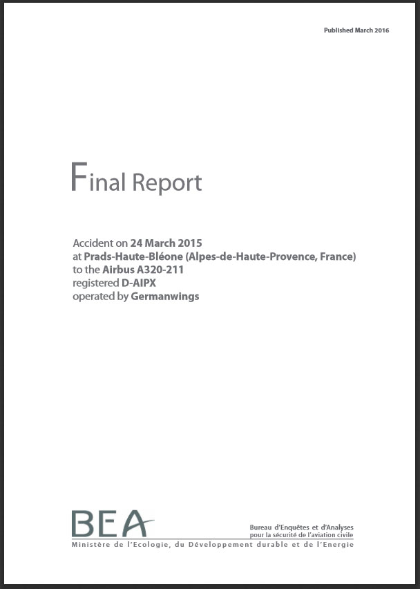 Ranskan onnettomuustutkintaviranomainen BEA (Bureau d'Enquêtes et d'Analyses) julkaisi 13. maaliskuuta 2016 loppuraportin Germanwings 4U9525 -lennon turmasta (linkki uutiseen tämän jutun lopussa. Loppuraportissa annettiin kaikkiaan 11 turvallisuussuositusta. Suomen Lentäjäliiton turvatoimikunnan mielestä BEA:n johtopäätökset tragedian syistä sekä lentoturvallisuussuositukset ovat asianmukaisia ja oikean suuntaisia. Suurin kysymys ilmailuyhteisölle onkin ollut, miten tämän turman kaltainen tapaus voitaisiin jatkossa estää.