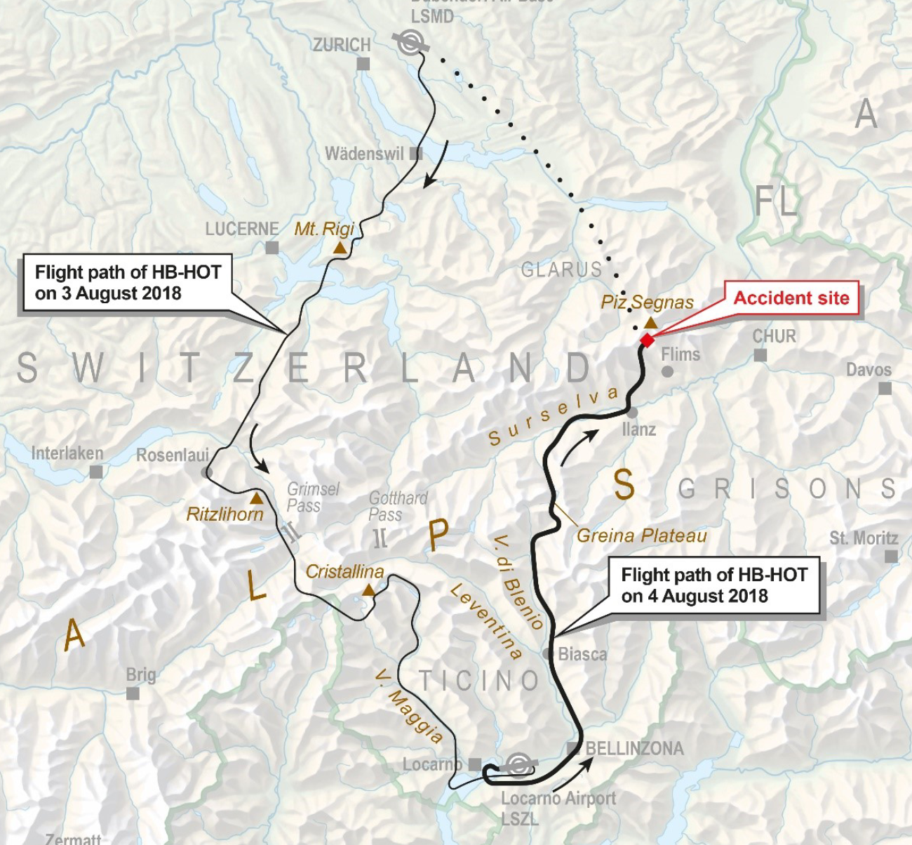 Ju-Airin operoima Junkers Ju 52/3m (HB-HOT) oli 4. elokuuta 2018 kello 16.14 noussut ilmaan yleisölennätykselle Locarnosta Dübendorfiin osana kaksipäiväistä kiertuetta.