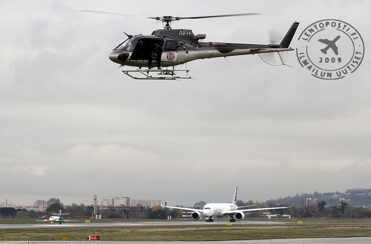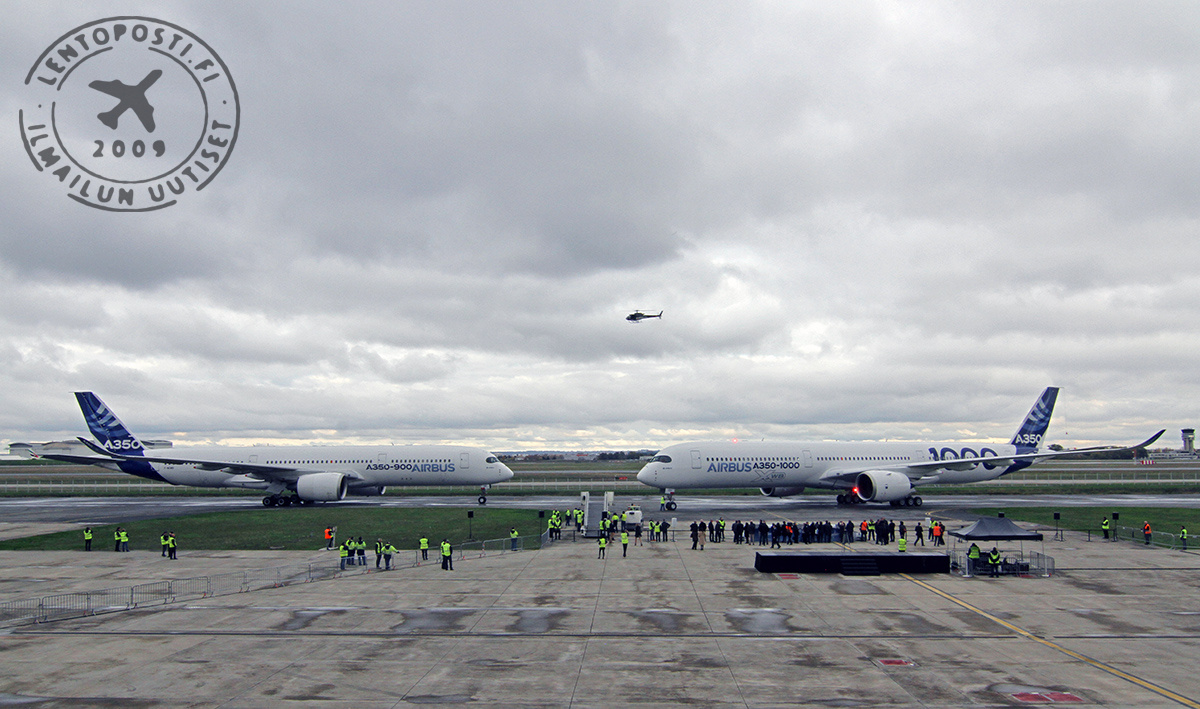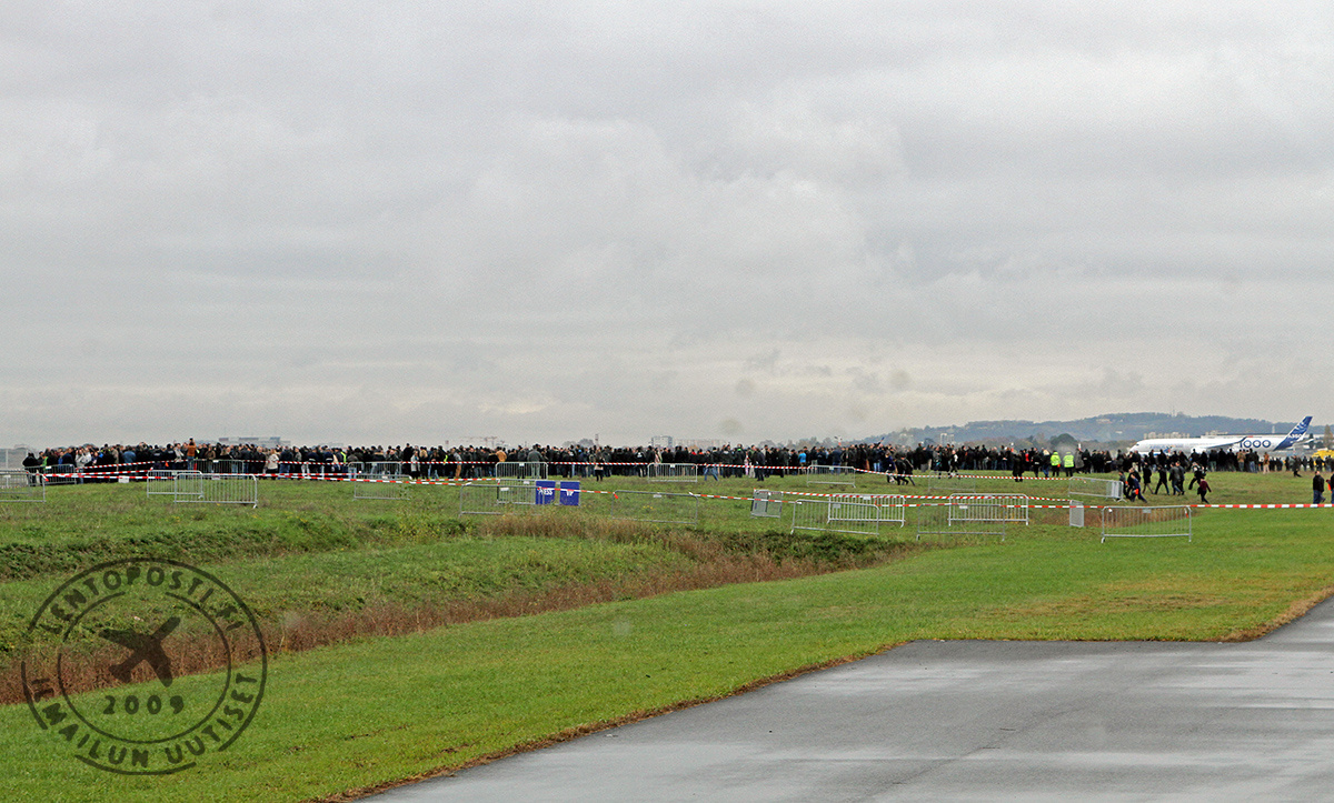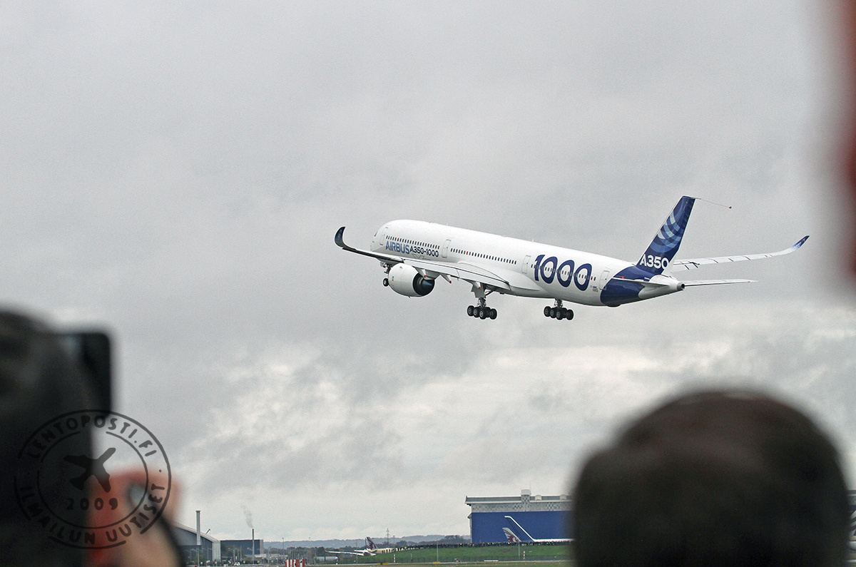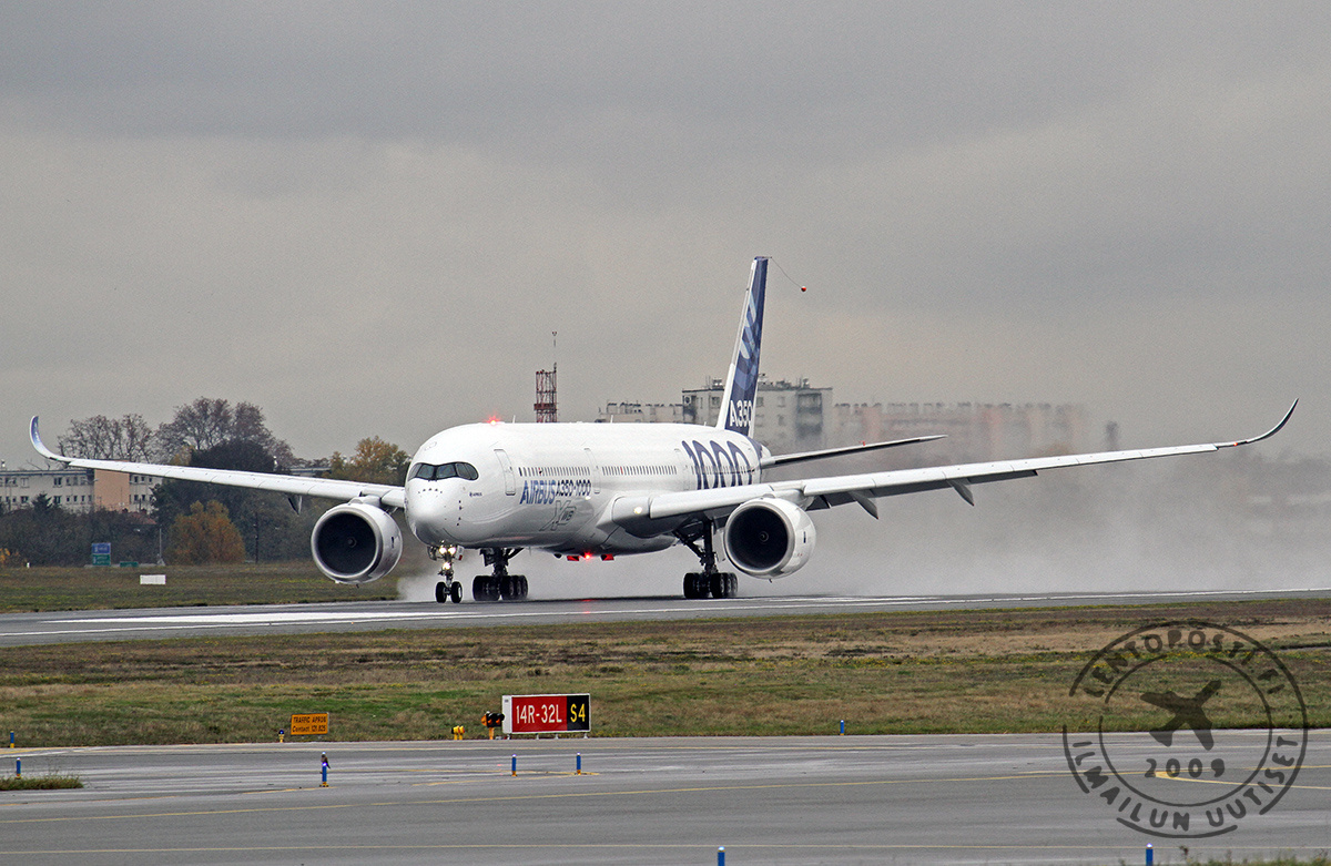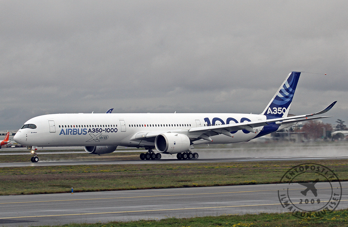 Kutsuvieraita, Airbusin työntekijöitä sekä median edustajia oli kokoontunut Toulousen kiitotien 32L varteen seuraamaan koneen nousua ensilennolleen. A350-1000 -kone (MSN59, F-WMIL) nousi ilmaan kello 10.42 paikallista aikaa. Koelento suuntautuu Toulousen eteläpuoleiselle alueelle Pyreneiden ylle. Lento on sujunut onnistuneesti ja laskutelineet on nostettu sisään.
