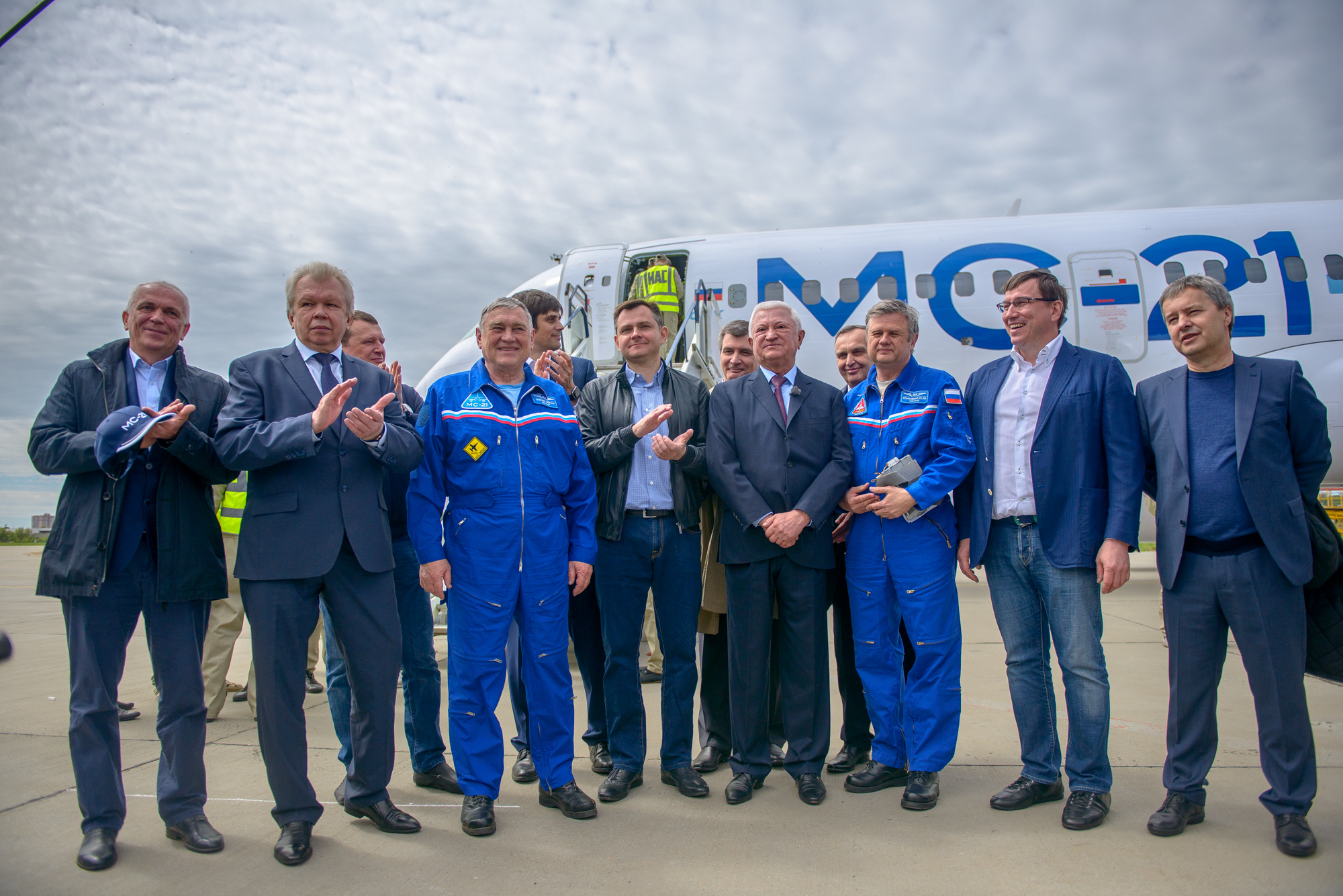Puolituntisen koelennon aikana koneella käytiin kilometrin korkeudessa ja lentonopeus oli 300 km/h. Ensilennon aikana varmistettiin lentokoneen stabiliteettia ja ohjattavuutta sekä moottoreiden toimivuutta. Lennon aikana tehtiin myös matalalähestyminen. Venäläiskoneen ovat suunnitelleet Irkut Corporation ja Yakovlev Design Bureau. Valmistuksesta vastaa UAC. Mukana hankkeessa on useita länsimaisia yhtiöitä kuten Pratt&Whitney, Rockwell Collins, Thales, Honeywell ja UTC Aerospace. Hanke käynnistettiin vuonna 2006 ja tarkoituksena oli korvata ikääntyvät Tu-154 -koneet uudella vaihtoehdolla.