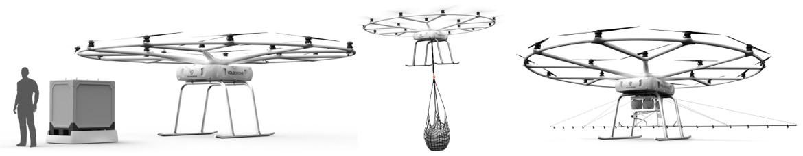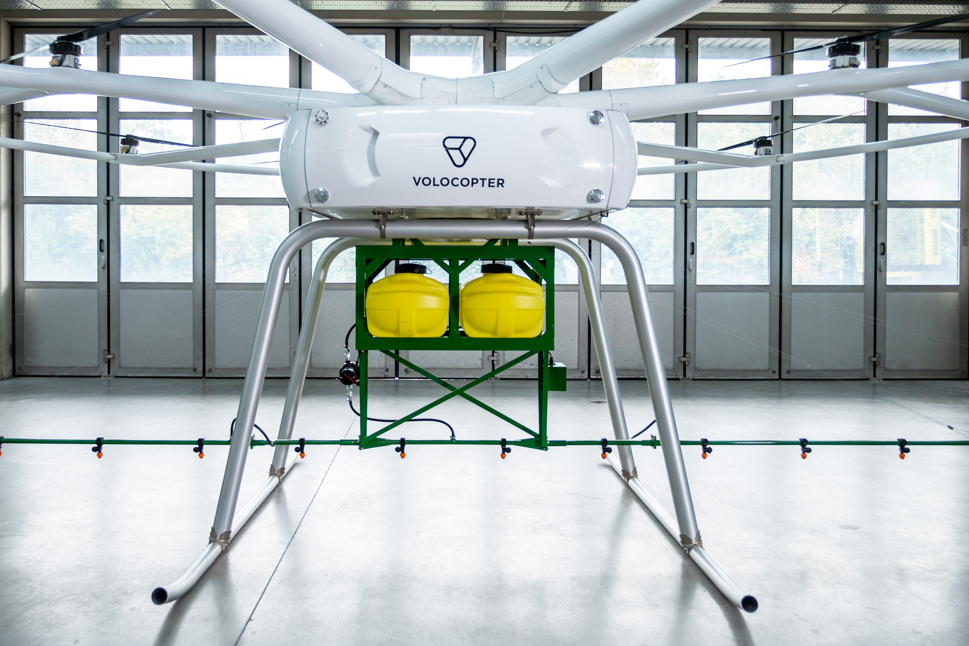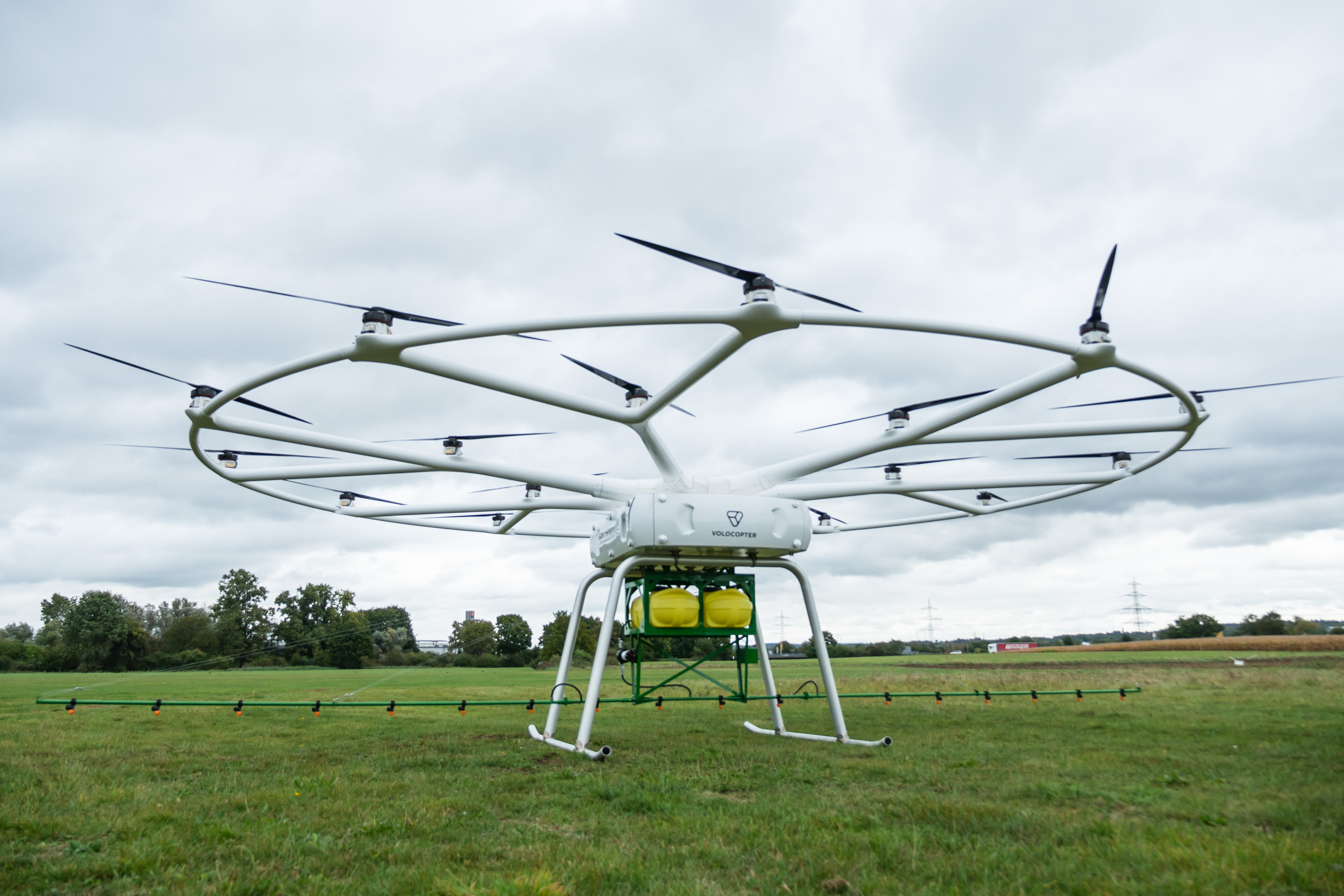 Volocopter ja John Deere esittelivät marraskuun alussa Saksassa maailman johtavassa maatalousalan Agritechnica-tapahtumassa uuden VoloDronen, joka solvetuu rahdin kuljettamiseen ja esimerkiksi peltojen ruiskutuksiin.