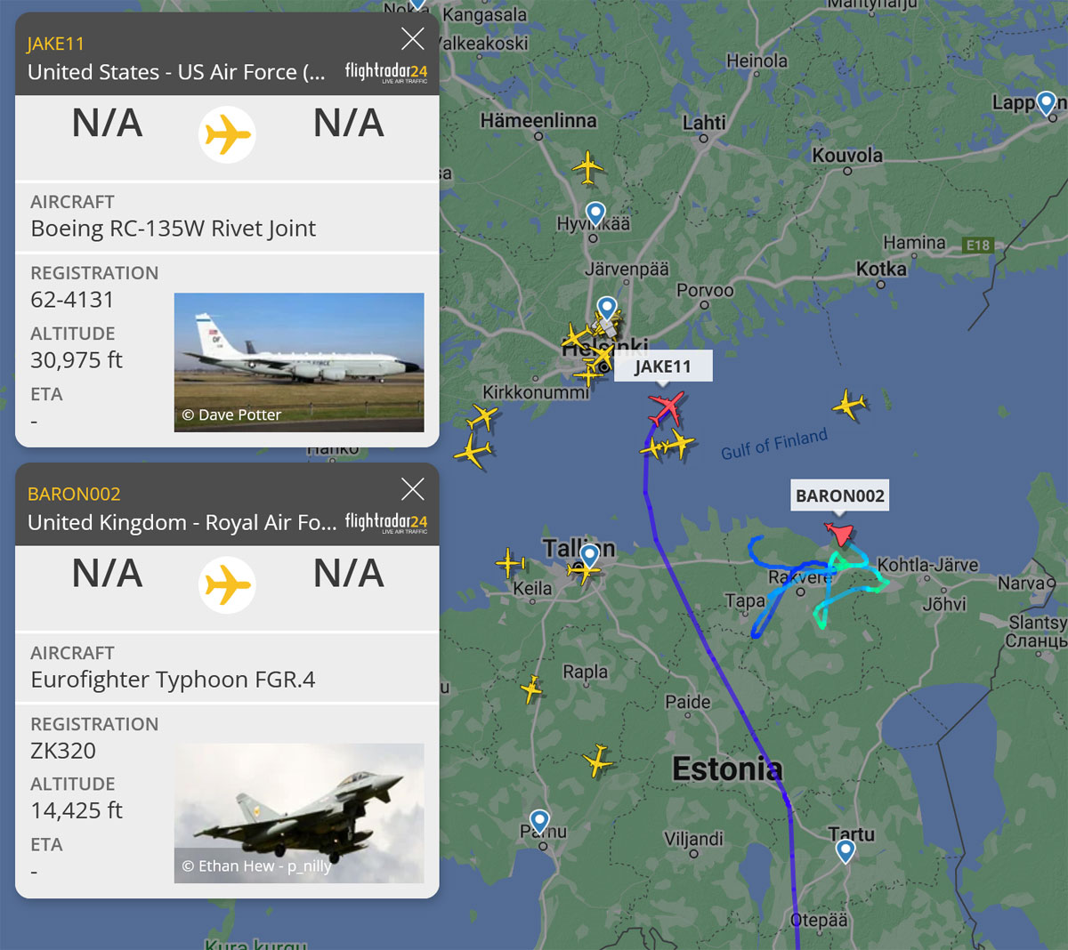 Suomenlahdella lensi Rivet Jointin saapuessa alueelle samanaikaisesti myös Viron Ämariin tukeutuva RAF:n Eurofighter Typhoon FGR.4 radiokutsulla Baron002.