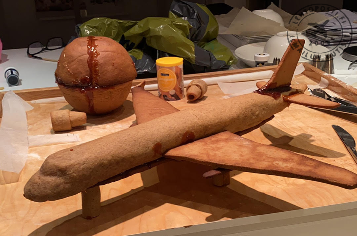 Kaikki koneessa, kiitotiessä ja Mr.Covidissa on siis syötäväksi kelpaavaa materiaalia. CHECK: Tarkastelu: Aikaa valmisteluihin, leipomiseen, osien kokoamiseen ja koristeluun kului yhteensä hieman yli 20 tuntia ja rahaa n. 50€. Keittiö on siivottu.