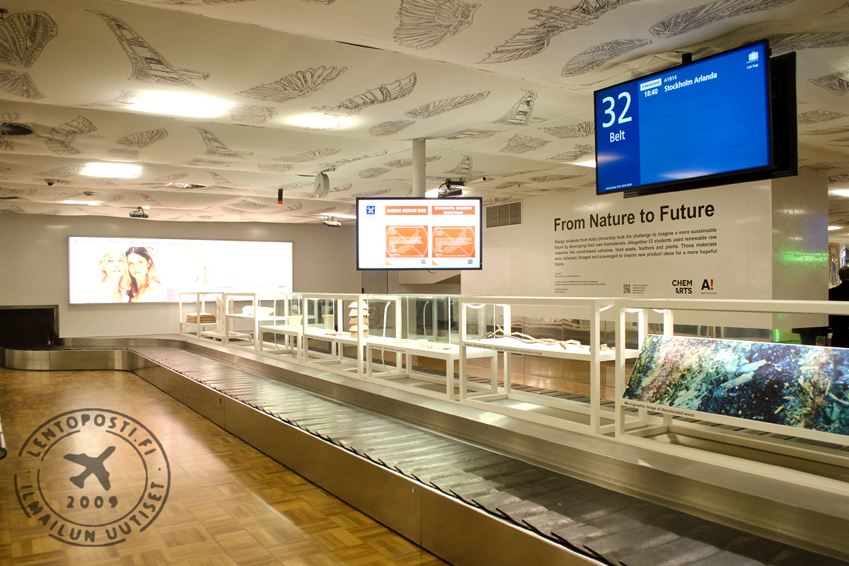 Joulukuussa 2017 avautunut From Nature to Future -näyttely on esillä matkatavara-aulassa 2B vuoden 2018 loppuun. Näyttelyyn pääsevät lennoilta saapuvat matkustajat niin Shengen- kuin non-shengen-maista. Helsinki-Vantaalla on kyseisen matkatavara-aulan lisäksi myös toisia matkatavara-auloja. Finavia ja Aalto-yliopisto sopivat syksyllä 2017 kolmen vuoden taideyhteistyöstä, johon kuuluu kolme näyttelyä Helsinki-Vantaan lentoasemalla. From Nature to Future on niistä ensimmäinen. Edellinen suurempi uudistus matkatavara-aula 2B:ssä tehtiin kaksi vuotta sitten, kun paikalla avautui Stefan Lindforsin vetämänä Suomen luontoa esittelevä näyttely. Vitriineissä oli esillä suomalaiskasveja ja täytettyjä metsän eläimiä. Seinille heijastettiin videoita suomalaisesta luonnosta.