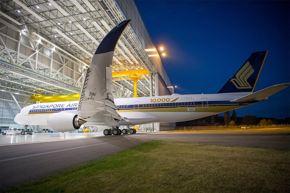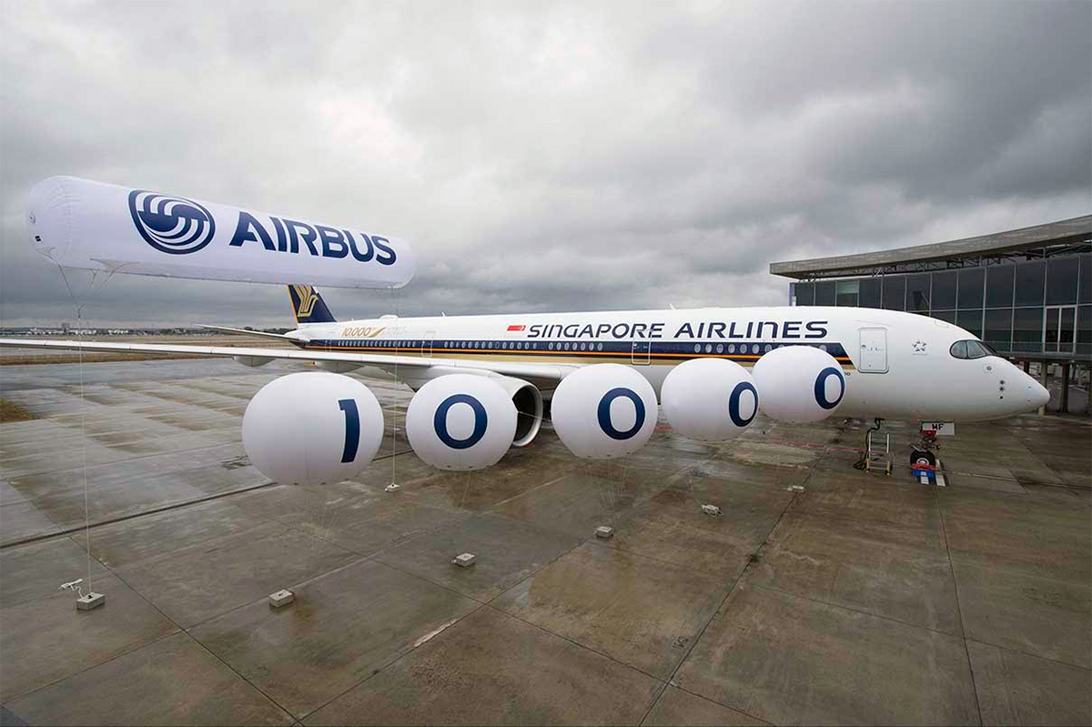 Airbus luovutti A350-900 (9V-SMF, MSN54)- juhlakoneen Singapore Airlinesille Toulousessa 14. lokakuuta. Sen kylkeä koristaa numero 10 000. Kyseessä oli kuudes A350-900 -koneen luovutus Singapore Airlinesille. Yhtiö on tilannut kaikkiaan 67 A350 XWB -konetta.
