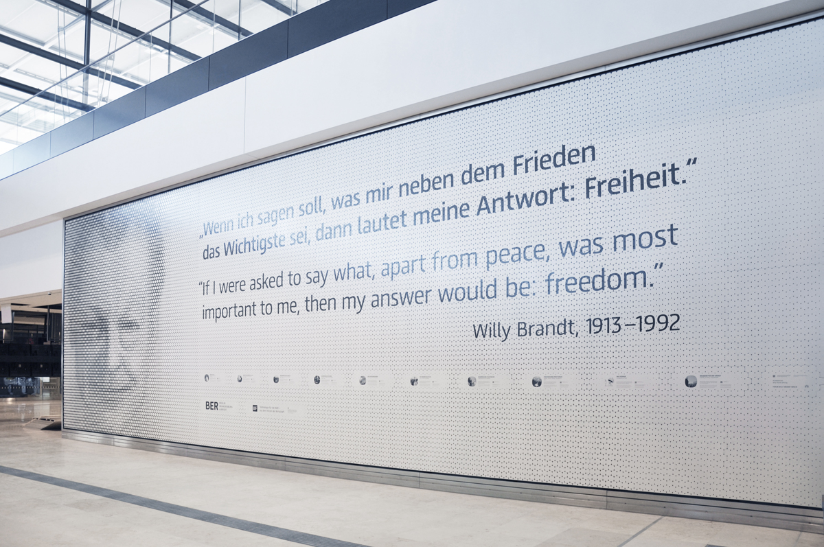 Nyt vihdoin avattava lentoasema nimettiin Saksan entisen liittokanslerin, ulkoministerin ja Berliinin pormestarin Willy Brandtin (1913-1992) mukaan. Perjantaina 30. lokakuuta 2020 lentoasemalla järjestetyssä seremoniassa paljastettiin terminaalissa 1 Willy Brandt -seinämä.