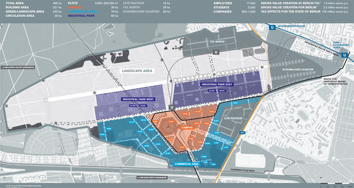 Tegelin lentoasema-alueen omistus siirtyy kesällä 2021 Tegel Projekt GmbH:lle. Alueelle on määrä nousta tutkimus- ja teollisuuspuisto sekä uusia asunalueita. Tegeliin suunnitellaan jopa 20 000 työpaikkaa, yliopistotiloja 5000 oppilaalle sekä asunrakennuksia 10 000 asukkaalle. Projektin arvioidaan kestävän kaikkiaan 20-30 vuotta.MH