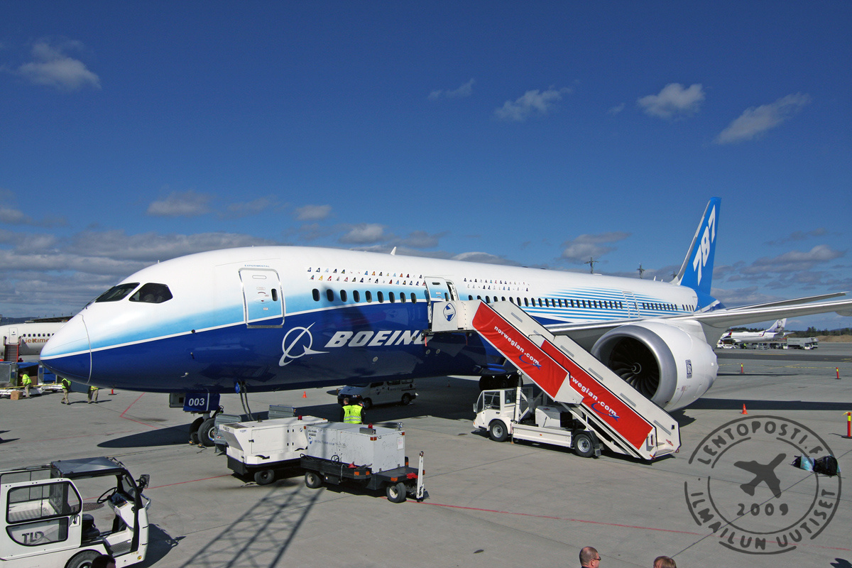 Boeing aikoo luovuttaa myös kaksi muuta koelentokonetta eri ilmailumuseoihin. ZA003:lla lennettiin myös Dreamlinerin maailmankiertue DreamTour, jonka aikana se vieraili 23 maassa. Myös Lentoposti.fi oli taivaalla tämän experimental-koneen vieraillessa Oslossa vuonna 2012. Boeing on toimittanut asiakkailleen jo 200 Dreamlineria. Seuraavat sataset paukkuvat nykyisellä tuotantovauhdilla vuoden 2015 aikana. Lue myös Lentoposti.fi:n visiitistä ZA003:ssa keväällä 2012: Boeing Dream Tour Oslo (osa 1) Boeing Dream Tour Oslo (osa 2)