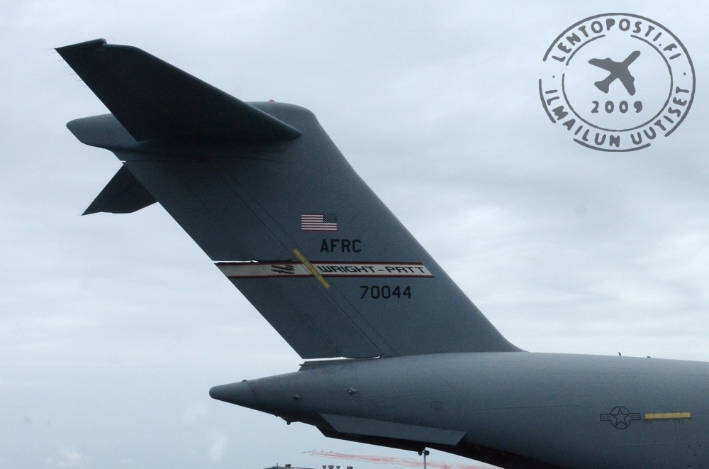 Kyseessä ovat ilmailun alkuaikojen kotikonnut ja Globemasterin sivuperäsimessä komeileekin Wright-veljesten maailman ensimmäisen Wright Flyer -moottorikoneen kuva (kuvassa). Sama profiili on myös koneen mittaritaulun tyyppikyltissä. Näytteillä oleva koneyksilö 97-0044 (sarjanumero F-47/P44, valmistunut 1996) kuuluu Air Force Reserve Commandin 445th Airlift Wingille (445 AW). Siten konetta lentävät ja operovat reserviläiset.