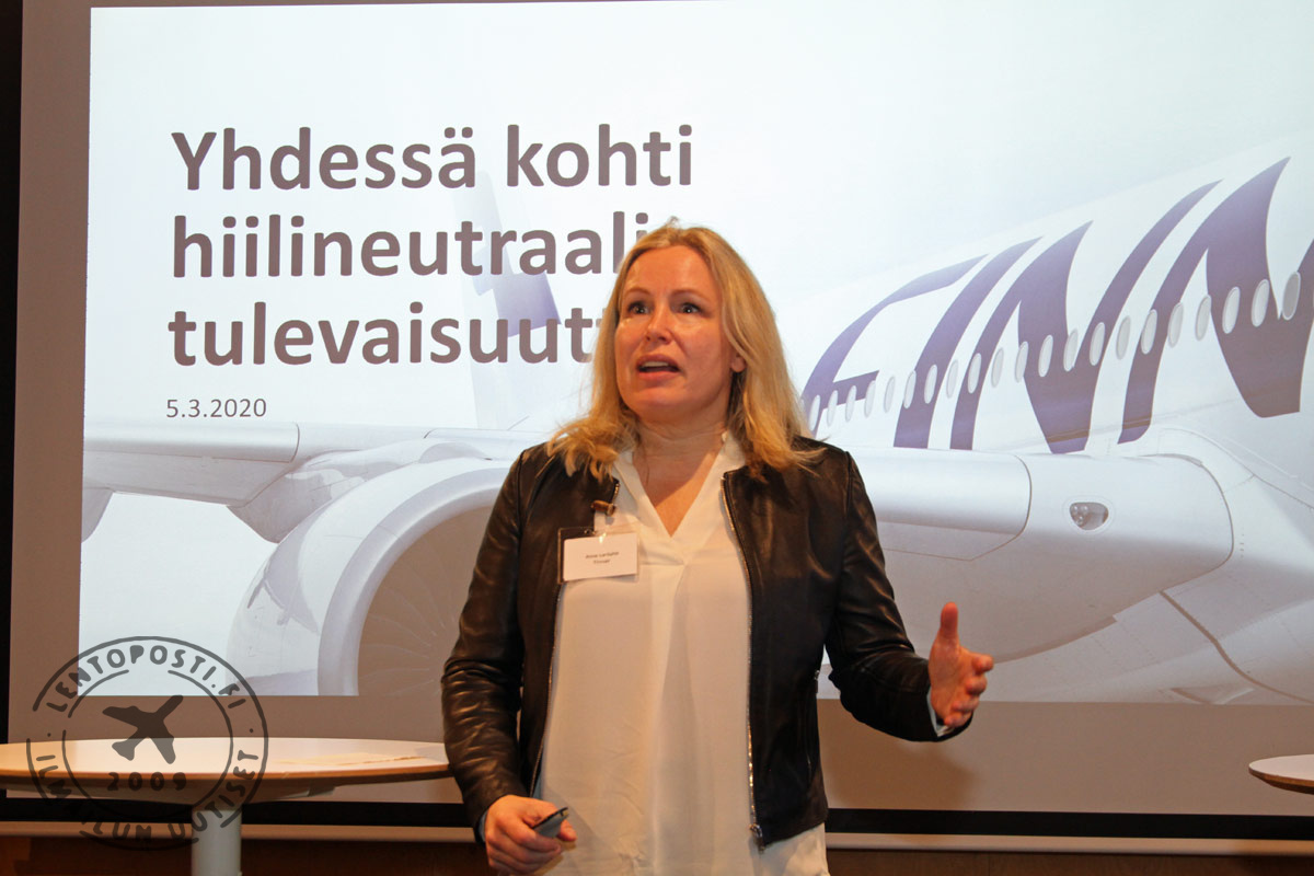Finnairin tavoiteena on saavuttaa hiilineutraalius muissa kuin lentotoiminnoissa vuoden 2022 loppuun mennessä. Nettopäästöt koko yhtiössä aiotaan puolittaa vuoden 2025 loppuun mennessä ja hiilineutraalius pyritään saavuttamaan vuoden 2045 loppuun mennessä. Täysin fossiilittomaan lentämiseen on vielä merkittävästi matkaa eli kompensaatiotoimia tarvitaan.