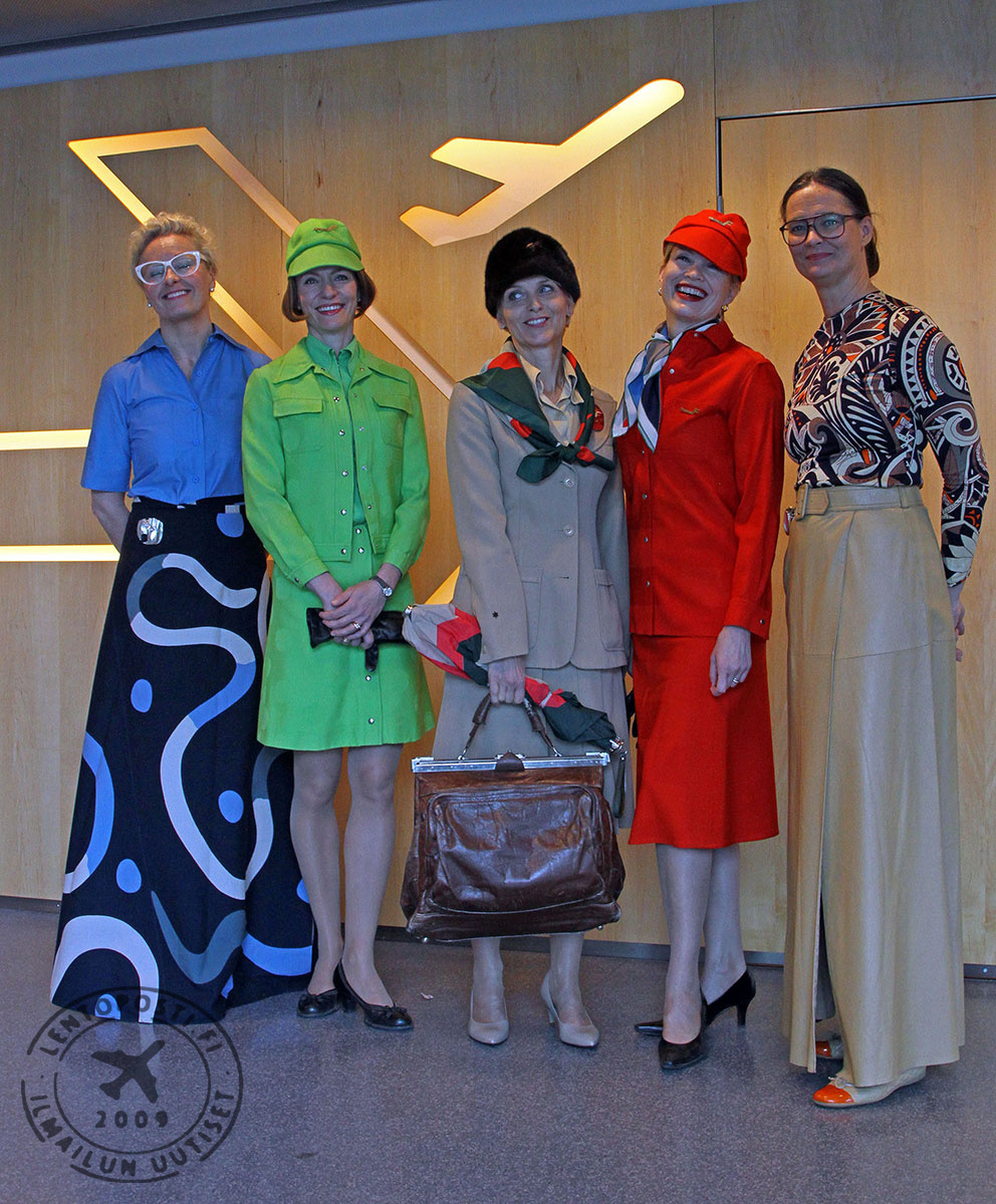 Edellisen kerran Finnairin historiallisia virkapukuja nähtiin lentoemäntien päällä Helsinki-Vantaan lentoaseman terminaalissa vuonna 2015, jolloin siellä avattiin Blue Wings of Time -näyttely. Se esitteli Finnairin matkustamohenkilökunnan virkapukuja läpi vuosikymmenten.