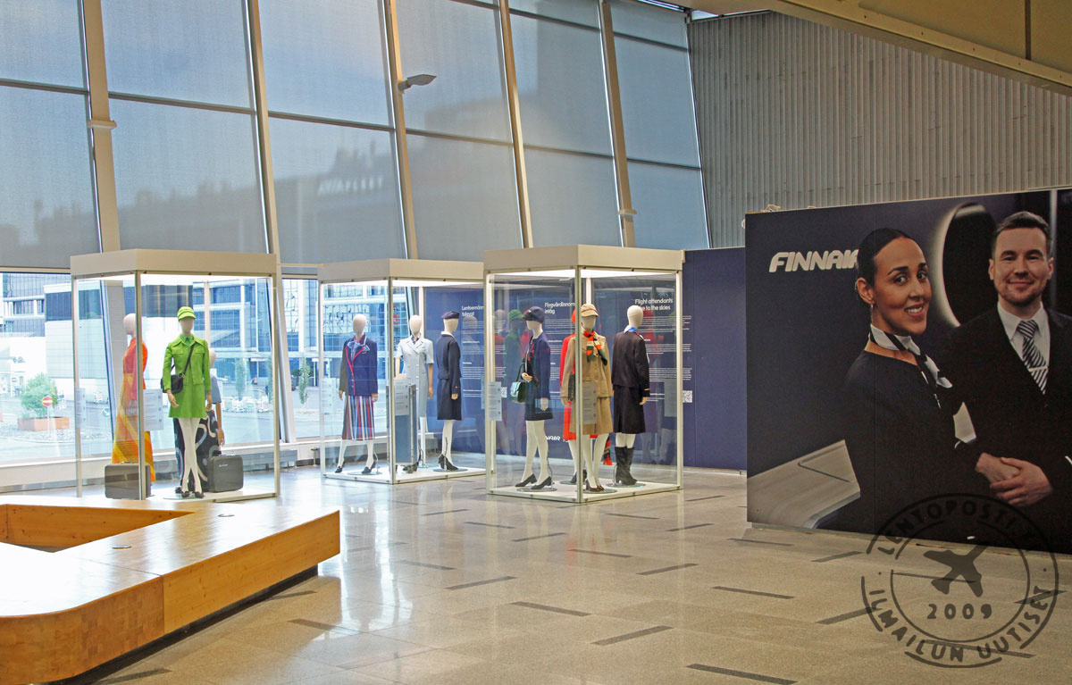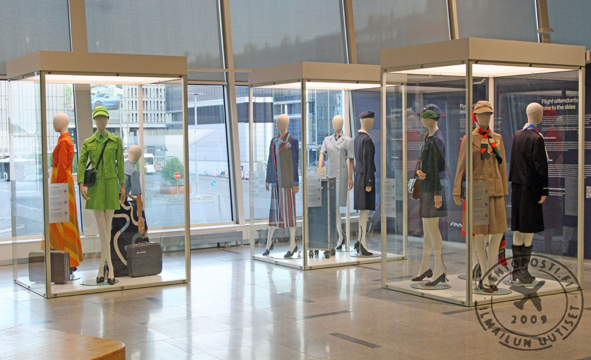 Lentomatkustajia 1. kesäkuuta 2023 alkaen ilahduttanut Virkapuvut vuosien varrella -näyttely sijaitsee terminaalissa heti turvatarkastuksen jälkeen. Esillä on kaikkiaan kymmenen historiallista lentoemäntien käyttämää virkapukua ja yhdennentoista voi nähdä ympäri lentoasemaa Finnairin matkustamohenkilökunnan yllä heidän kulkiessaan lentokoneille.