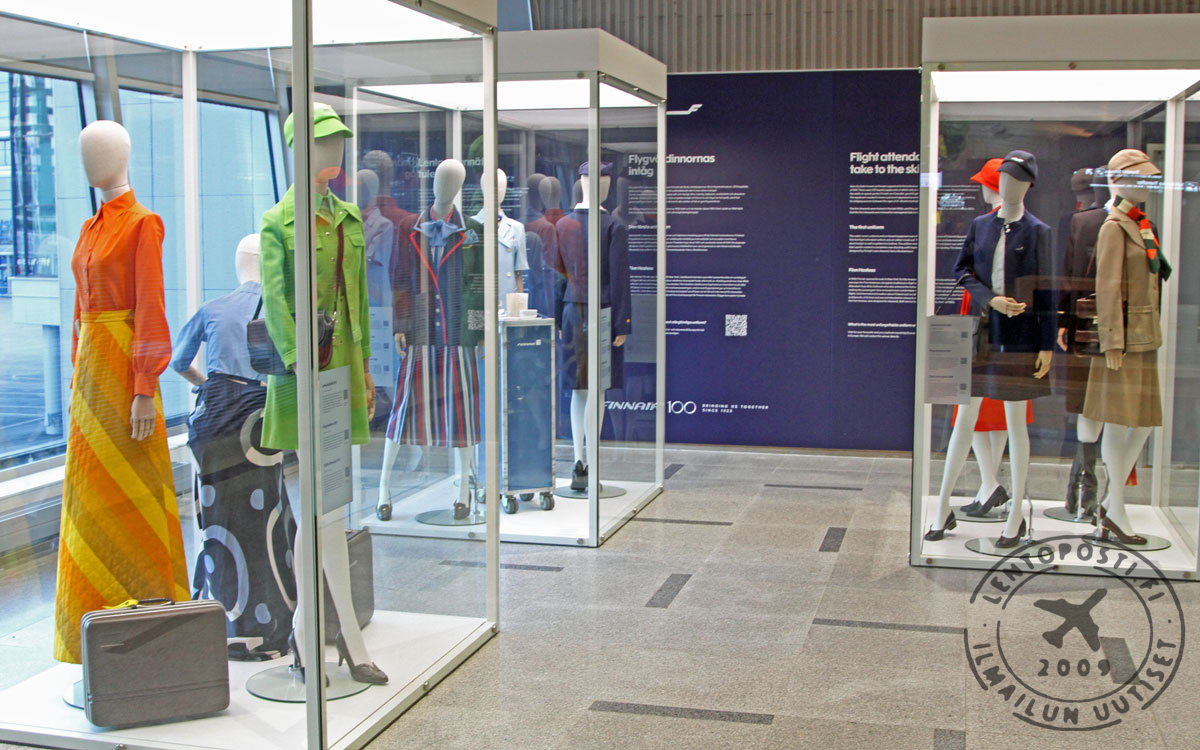 Finnairin entiset virkapuvut tekivät jälleen paluun Helsinki-Vantaan lentoaseman terminaaliin osana Finnairin 100-vuotisjuhlia. Tämä kesäkuun 2023 alussa avattu Finnairin lentoemäntien virkapukuja esittelevä Virkapuvut vuosien varrella -näyttely esittelee osan suomalaisyhtiössä käytössä olleista matkustamohenkilökunnan virkapuvuista.