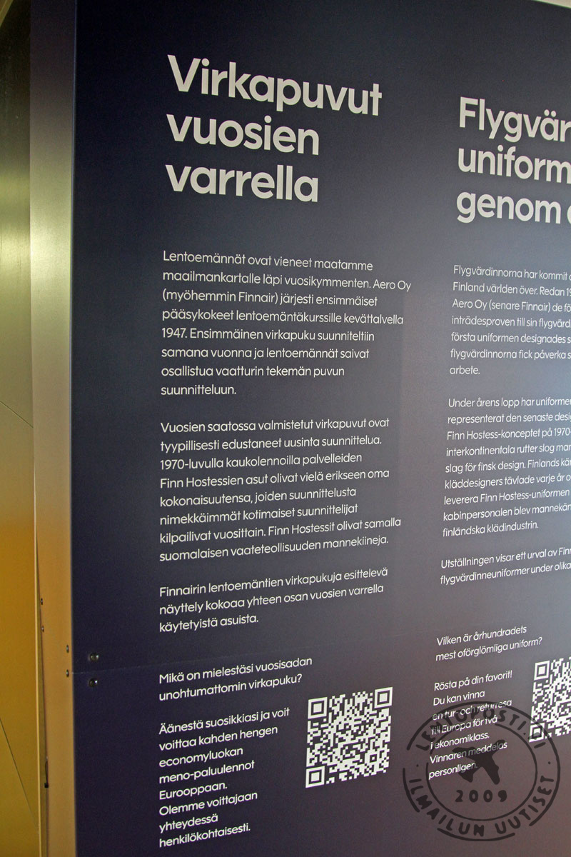 Lentomatkustajat voivat tutustua virkapukuja esittelevään näyttelyyn, mutta kaikki muutkin voivat äänestää omaa suosikkiaan verkkopalvelun kautta. Äänestämällä on mukana arvonnassa, jossa voi voittaa kahden hengen economy-luokan meno-paluulennot Eurooppaan.