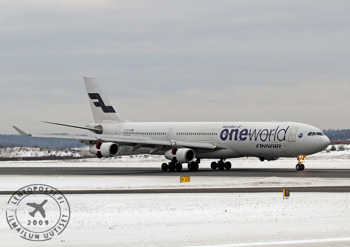Kyseessä oli tuolloin Finnairin viides A340-300 -kone ja se oli maalattu oneworld-allianssiväritykseen. Finnairin tuorein nelimoottoriaikakausi käynnistyi vuonna 2006, kun ensimmäinen käytettynä hankittu A340-300 (OH-LQA) otettiin käyttöön. McDonnell Douglas MD11 -koneiden aika oli tulossa päätökseen ja niiden korvaaminen Airbus-laivastolla alkoi. Aiemmin yhtiö operoi nelimoottorisilla Douglas DC-8 -matkustajakoneilla vuodesta 1969 alkaen. Niillä Finnair lensi aina vuoteen 1985 asti. Blue1 on lentänyt Avro RJ85 -suihkukoneilla. Mäntämoottoriaikakautena Ilmavoimat operoi sotien aikana nelimoottorisella de Havilland D.H.86 Express -koneella. Veljekset Karhumäellä on ollut DC-6-koneita.