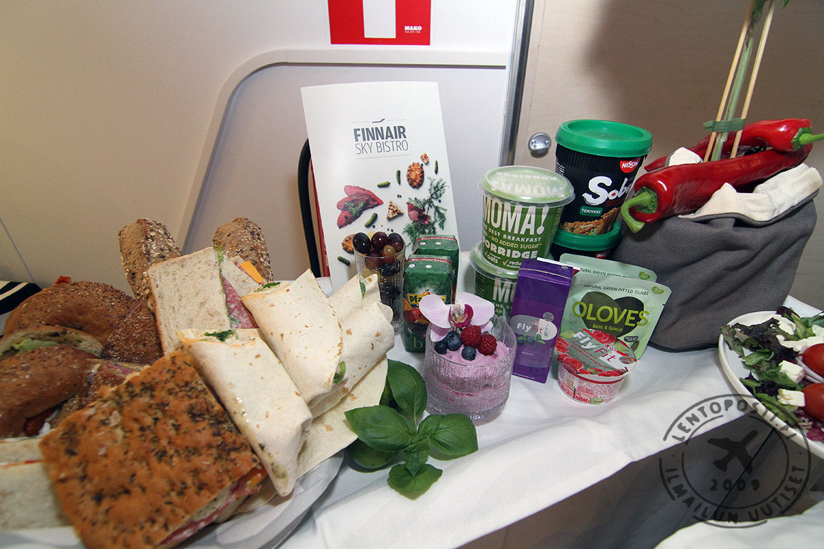 Sky Bistron valikoimaan kuuluu useita leipä- , salaatti- ja muita ateriavaihtoehtoja. Mukana on myös lämpimiä annoksia. Aterian voi tilata netissä etukäteen tai vaihtoehtoisesti ostaa lennolla. Silloin on kuitenkin varauduttava valikoiman rajallisuuteen.