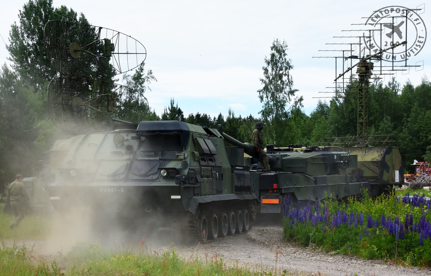 Apu Buk-vaunujen liikutteluun löytyi Parolasta Panssariprikaatista, jonka vastuuseen Buk-järjestelmä viime vuotensa muutenkin kuului. Torstaiaamuna Ilmatorjuntamuseon alueelle jyristeli kuljetuslavetilta purettu Leopard 2 A4 -taistelupanssarivaunu mukanaan jykevä hinausaisavarustus. Harvinaista tapahtumaa oli mainostettu museon nettisivuilla. Paikalle saapuikin useita kymmeniä ilmatorjunnasta ja panssarikalustosta kiinnostuneita. Ensimmäisenä siirrettiin lähimpänä loppusijoituspaikkaa jo valmiiksi oleva tutkavaunu. Hinausaisan asennus vei jonkin aikaa, koska se piti rakentaa osista sovittaen itäisen ja läntisen kaluston liitännät yhteen. Panssariprikaatin iskuryhmä sai kuitenkin aikaan toimivan kokonaisuuden. Leopardin nykäistessä tutkavaunu ei ensin liikahtanutkaan. Syykin selvisi: käsijarru oli päällä. Leopard olisi toki voinut vetää sen ns. nahkoineen, mutta Buk-kaluston kanssa jo sen aktiiviaikanakin toiminut hinausmiehistö päätti avata museovaunun luukut ja käsijarru saatin poiskytkettyä.