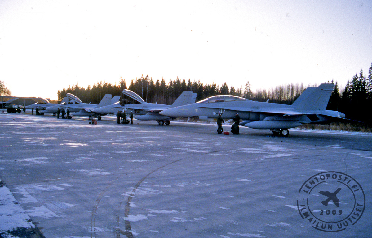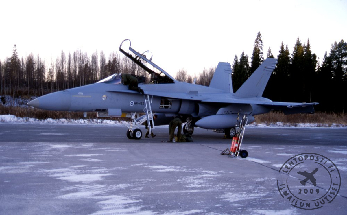 Tiistai-iltapäivällä 7.11.1995 Ilmavoimien Pirkkalan tukikohtaan lasketuivat HN-462, HN-464, HN-465 ja HN-466. Hävittäjien miehistönä oli suomalaisia ja yhdysvaltalaisia ohjaajia. Yksi ohjaajista oli ilmavoimien silloinen komentaja Matti Ahola.