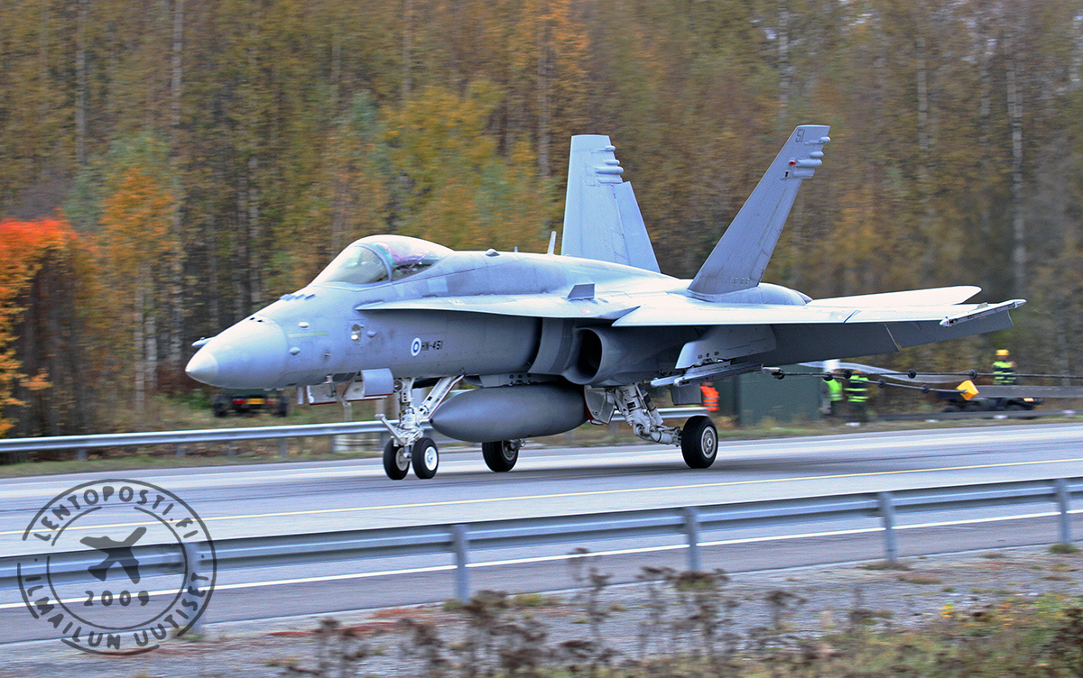 McDonnell Douglas (Boeing) F/A-18 C Hornet -hävittäjän lasku onnistui ja koneen jarrukoukku osui kiitotien poikki kulkevaan pysätysvaijeriin. Tanskalainen SAR-helikopteri (Search and Rescue) varmisti laskua ilmassa. NordJysken nettijutussa on kuva Hornetista Aalborgissa. Kone saatiin pois kiitotieltä 15 minuutissa. Lähtövuorossa ollut Norwegianin matkustajakone joutui kuitenkin odottamaan ylimääräiset puoli tuntia, kun jarrujärjestelmän vaijeria kelattiin takaisin valmiusasentoon. Tapaus sattui sunnuntaina 24. syyskuuta noin kello 14.45. Hornet ilmeisesti korjataan paikan päällä. Otsikkokuvassa Ilmavoimien Hornet tekee vaijerilaskun maantietukikohdassa Lusissa Baana 16 -harjoituksessa. Ilmavoimat kertoi maanantaina kello 16 jälkeen, että Tanskassa pysäytysjärjestelmää käyttänyt Hornet on saatu kuntoon ja se on jo palannut Suomeen. Aalborgin kenttä (EKYT) sijaitsee Tanskassa Jyllannin niemimaan pohjoisosassa. Sitä käyttää niin siviililentoliikenne kuin Tanskan ilmavoimat. Kentällä on kaksi kiitotietä: 2654 metriä pitkä 08L/26R ja 2549-metrinen kapeampi 08R/26L. Ensimmäisenä tapauksesta Suomessa kertoi Ilta-Sanomat. T.T. Päivittynyt 17.15: lisätty tieto Hornetin paluusta Suomeen.