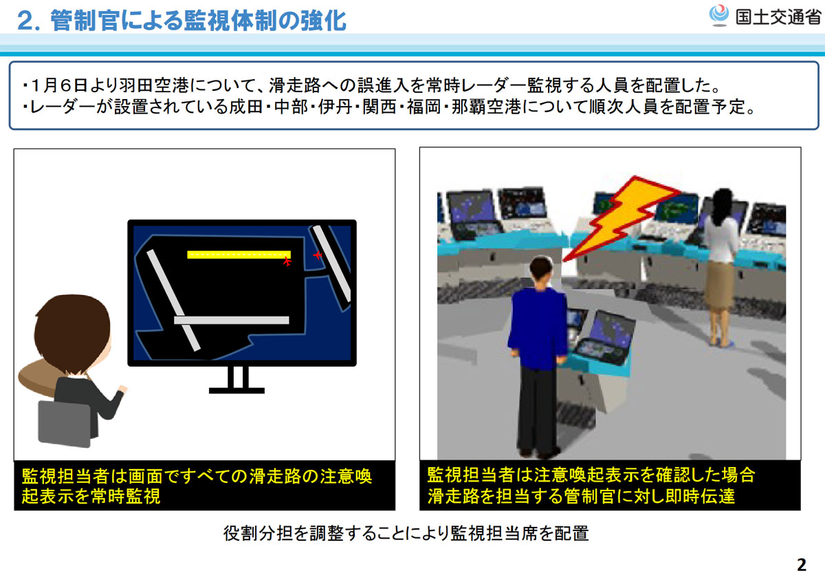 Japanin maa-, infrastruktuuri-, kuljetus- ja matkailuministeriö MLIT otti käyttöön uusia ennaltaehkäiseviä toimia, jotta Tokion Hanedan kiitotiellä 2. tammikuuta tapahtuneen turman kaltaiset onnettomuudet vältettäisiin tulevaisuudessa. Lennonvarmistuksessa on otettu käyttöön uusia menetelmiä turvallisuuden takaamiseksi ja matkustajien luottamuksen palauttamiseksi.