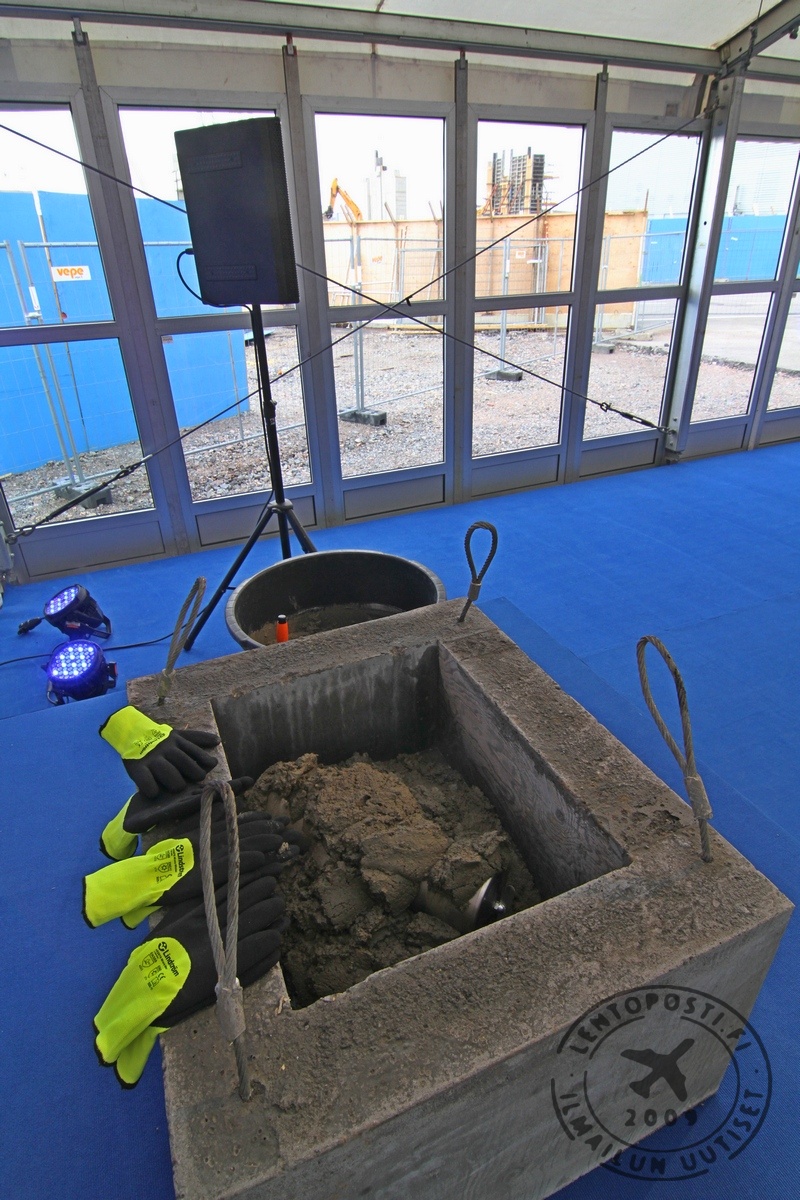 Lisäksi lieriöön pudotettiin Finavia-logolla varustettu USB-muistitikku, jolle oli tallennettu uudisrakennuksen pääpiirustukset. Kun rakennus joskus hamassa tulevaisuudessa puretaan ja lieriö löydetään, toivottavasti käytössä on edelleen USB-teknologiaa. Tilaisuuden juontajana toimi YLE Uutisista tuttu Piia Pasanen. Valtiovallan tervehdyksen tilaisuuteen toi liikenne- ja viestintäministeri Anne Berner. Pääasiakasta eli Finnairia edusti toimitusjohtaja Pekka Vauramo. Luonnollisesti puheenvuoron käytti myös Finavian toimitusjohtaja Kari Savolainen.